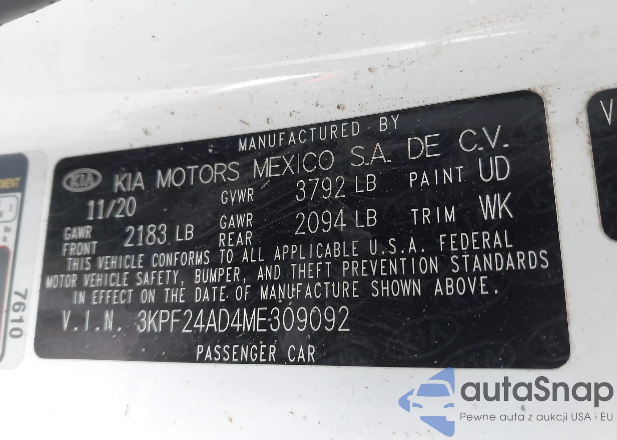 • VIN 3KPF24AD4ME309092