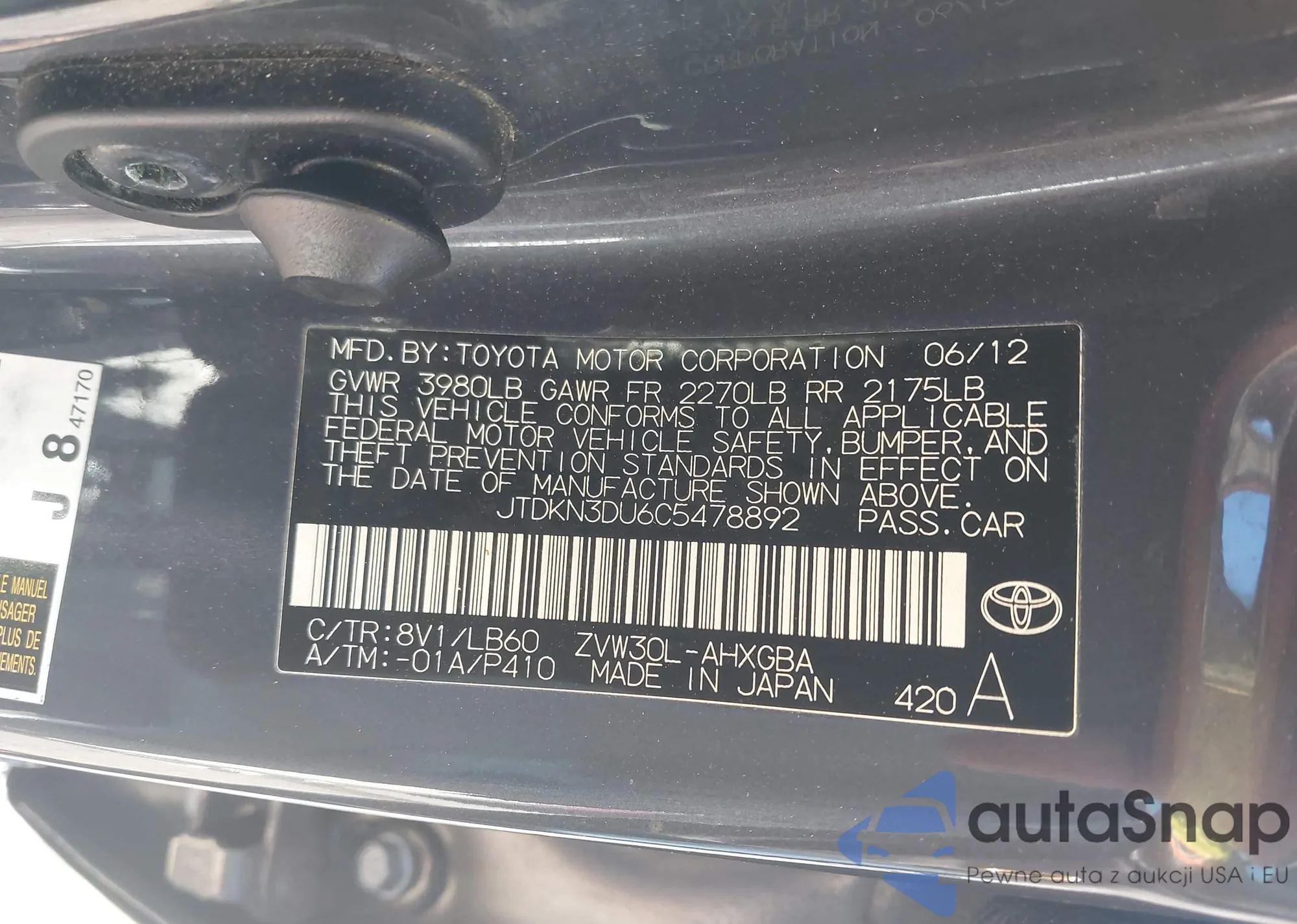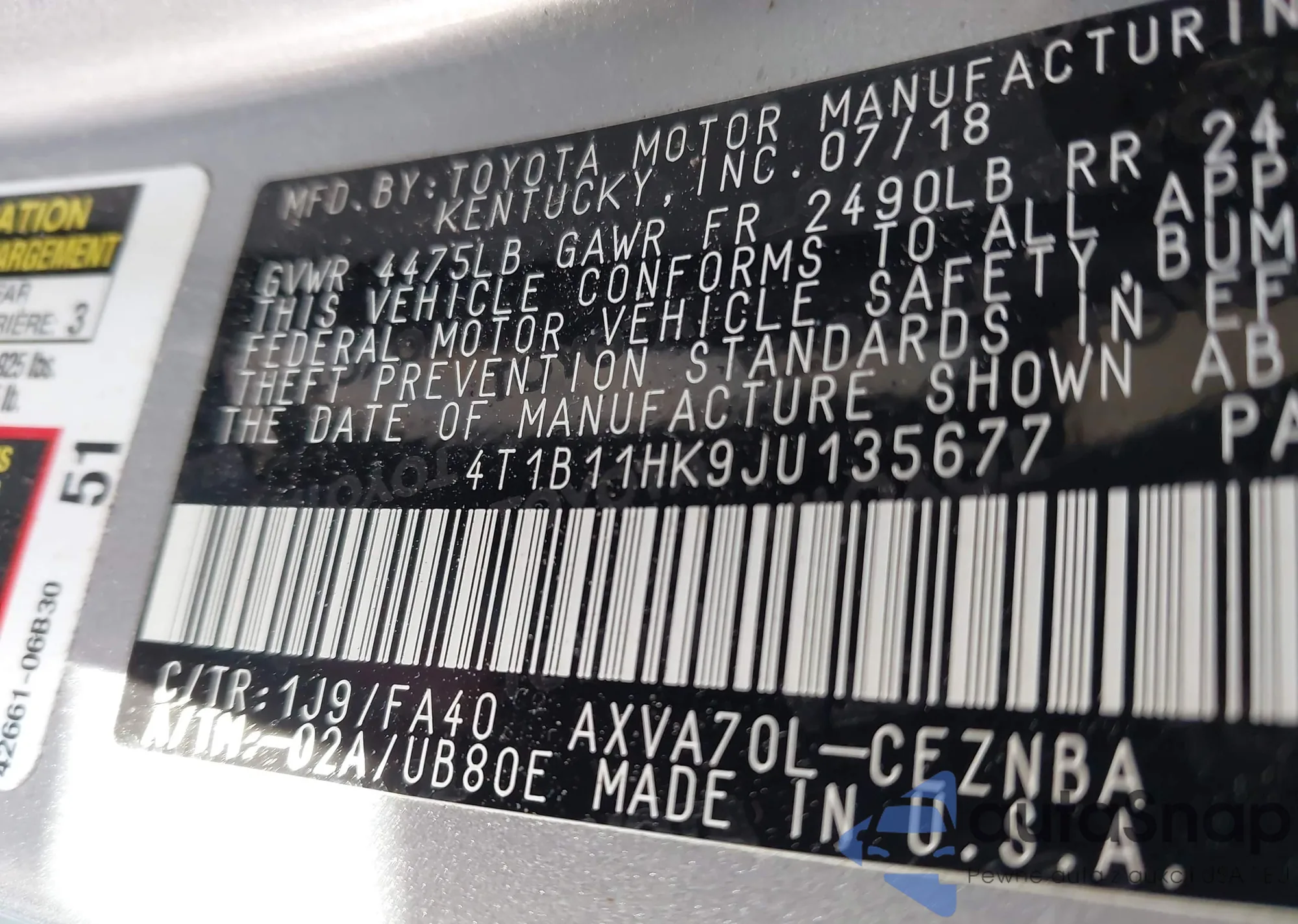 • VIN 4T1B11HK9JU135677