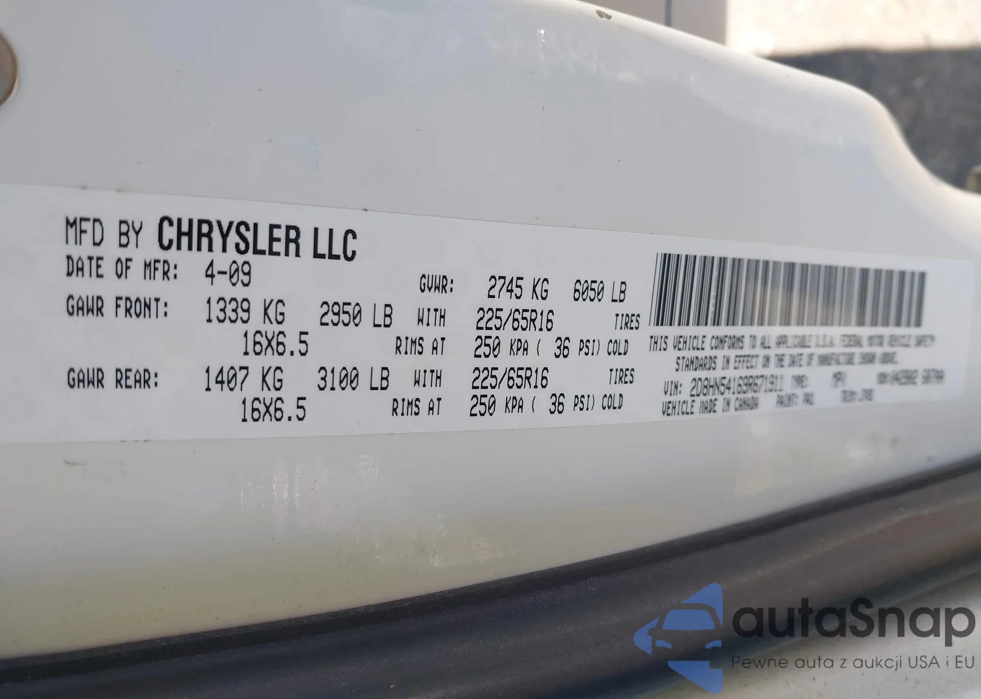 • VIN 2D8HN54169R671911