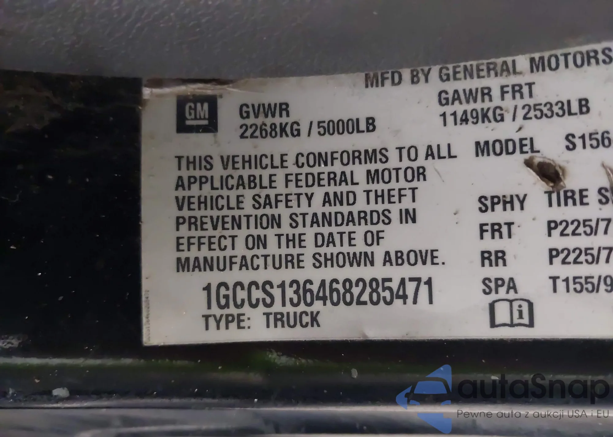 LOT: 43381129 VIN: 000000FPY32004481