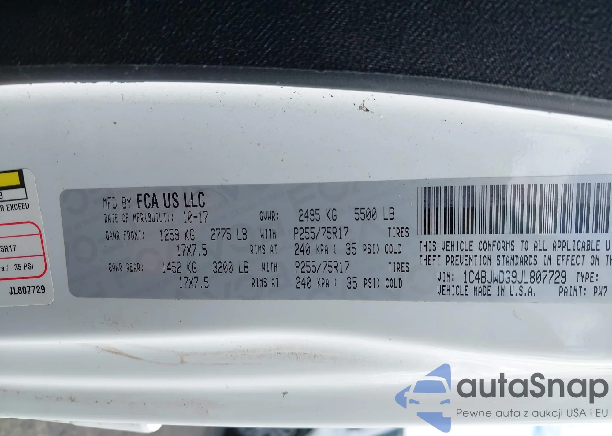 • VIN 3CZRU5H35JG705424