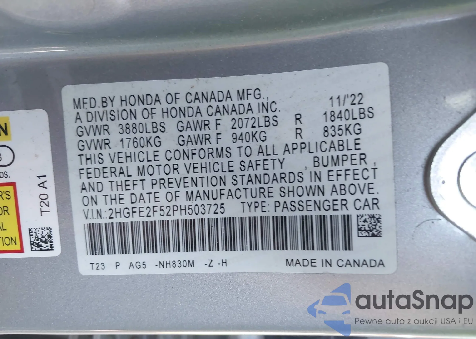 • VIN 2HGFE2F52PH503725