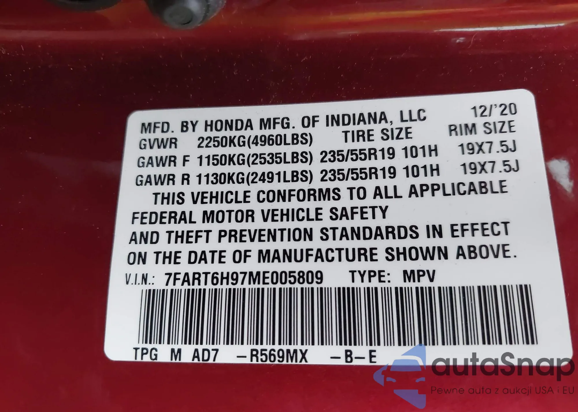 • VIN 7FART6H97ME005809
