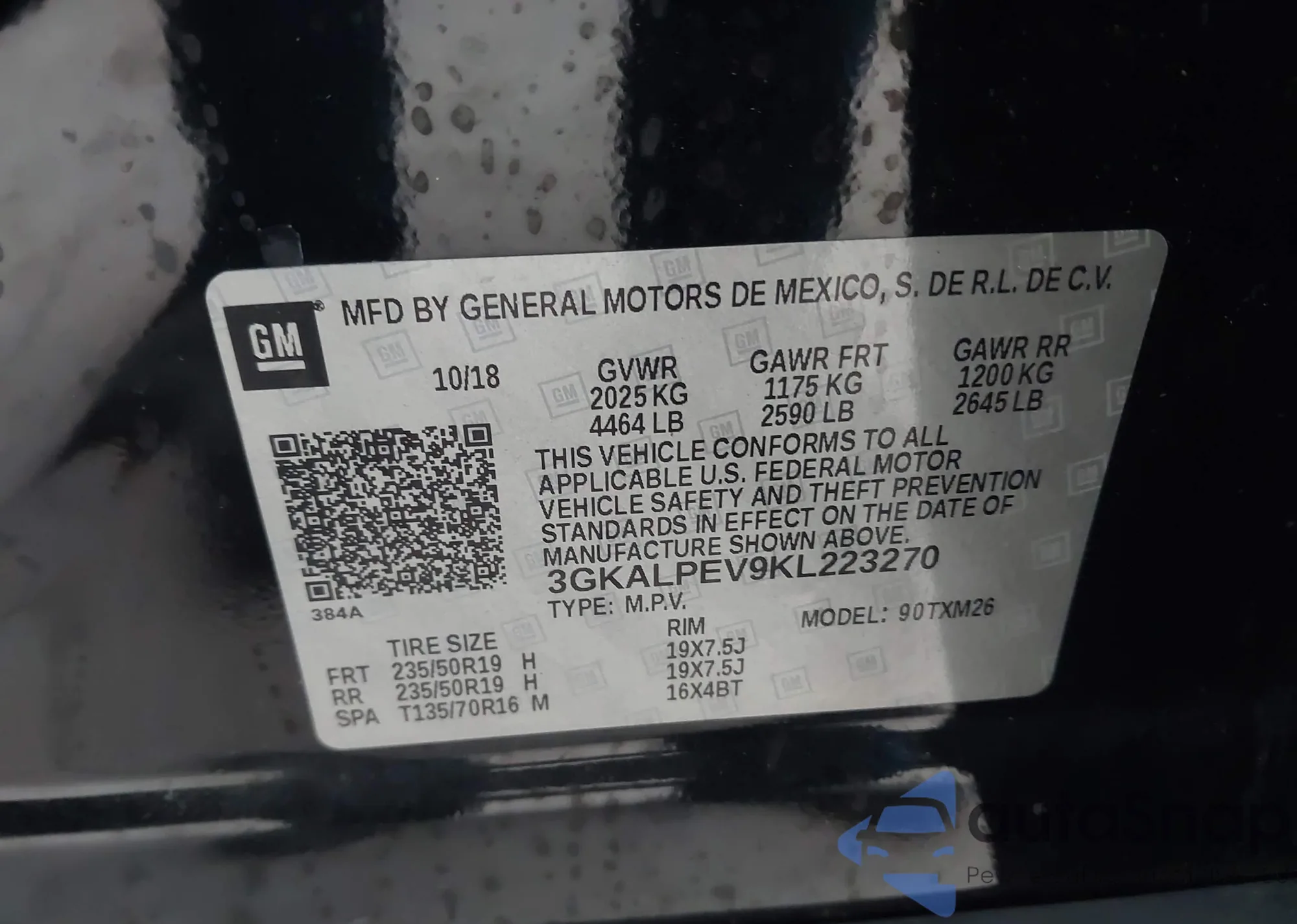 LOT: 43648849 VIN: 3GKALPEV9KL223270