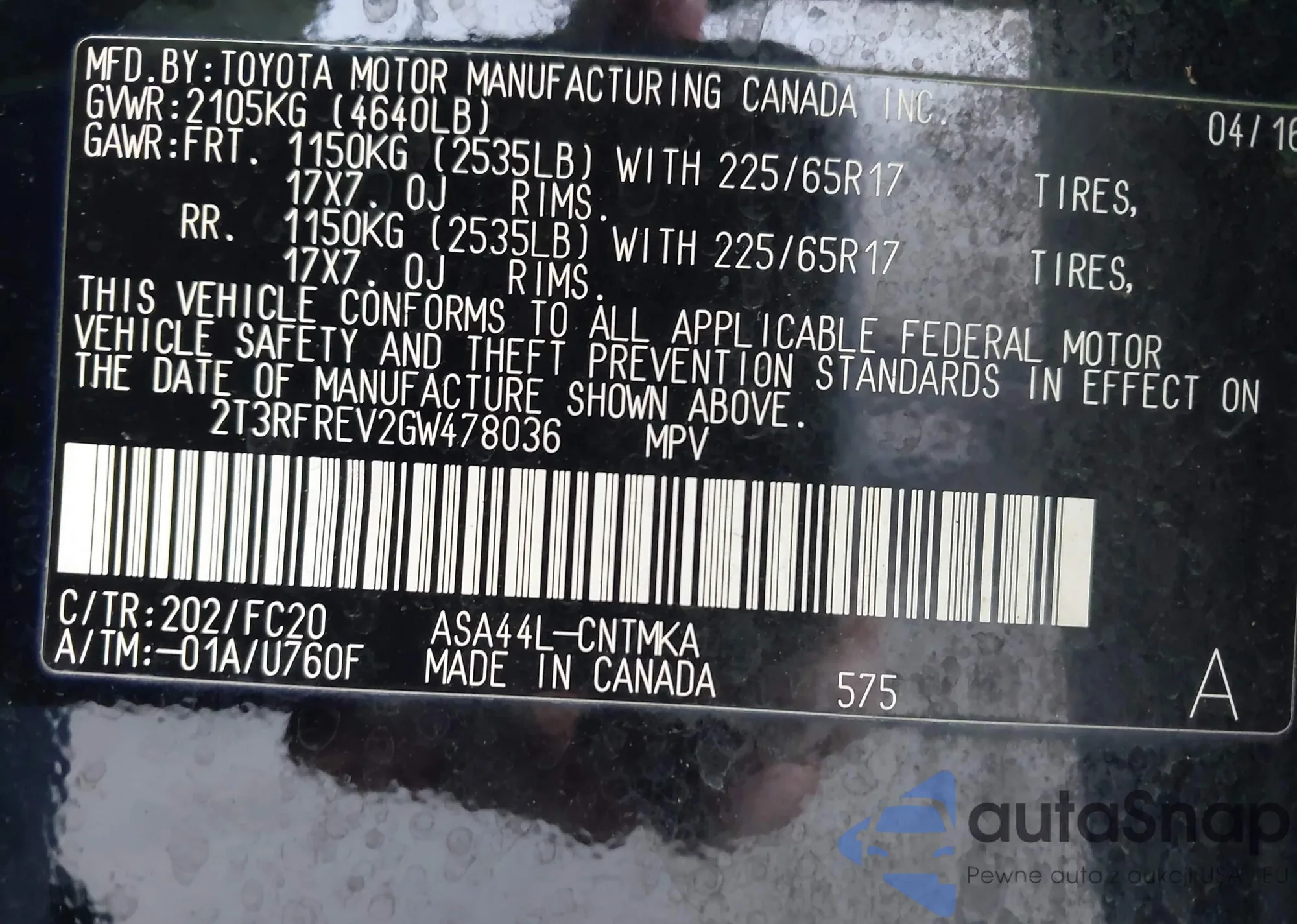 • VIN 2T3RFREV2GW478036