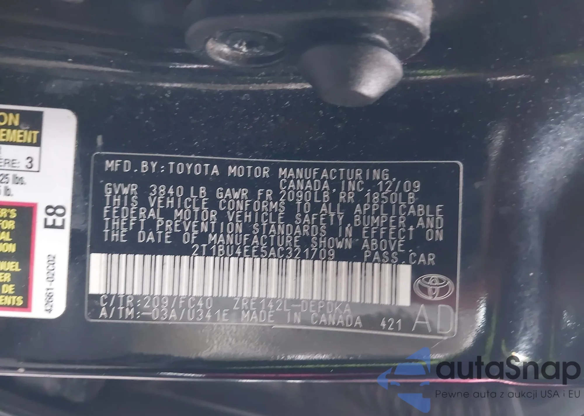 • VIN 2T1BU4EE5AC321709