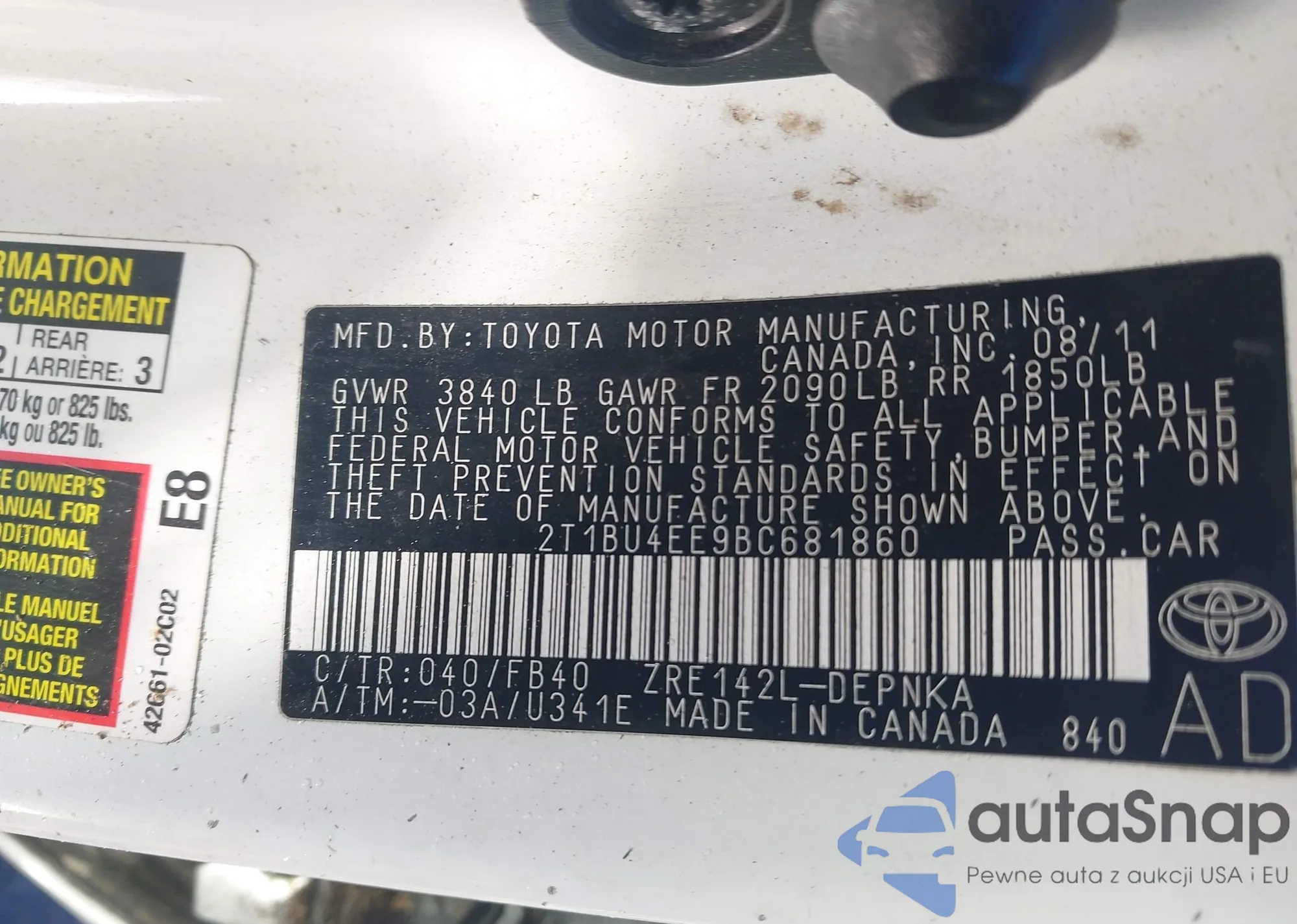 LOT: 43657428 VIN: 2T1BU4EE5AC321709