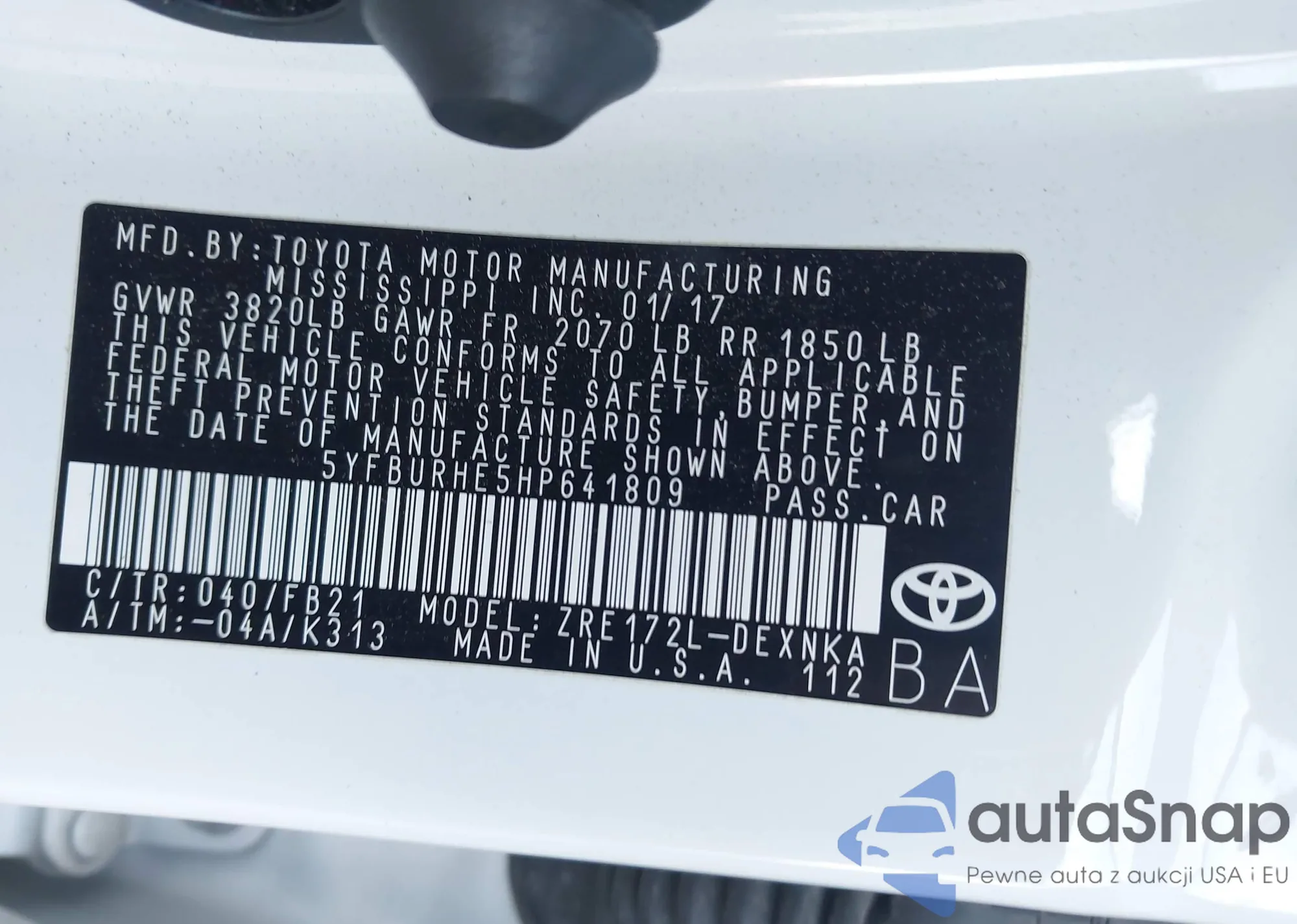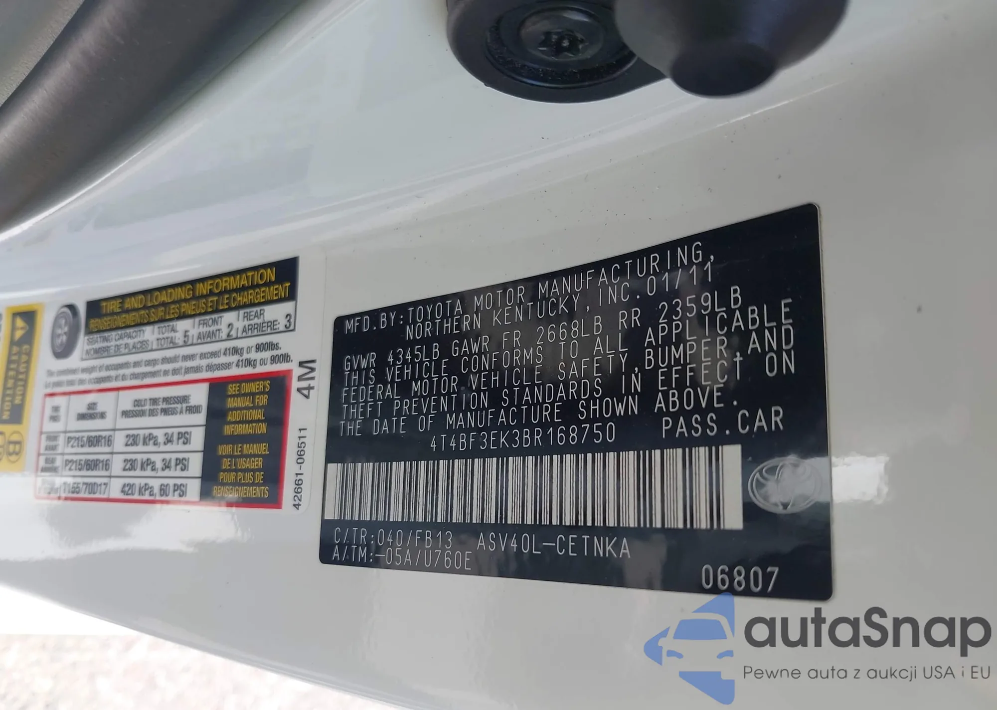 • VIN 04T4BF3EK3BR16875