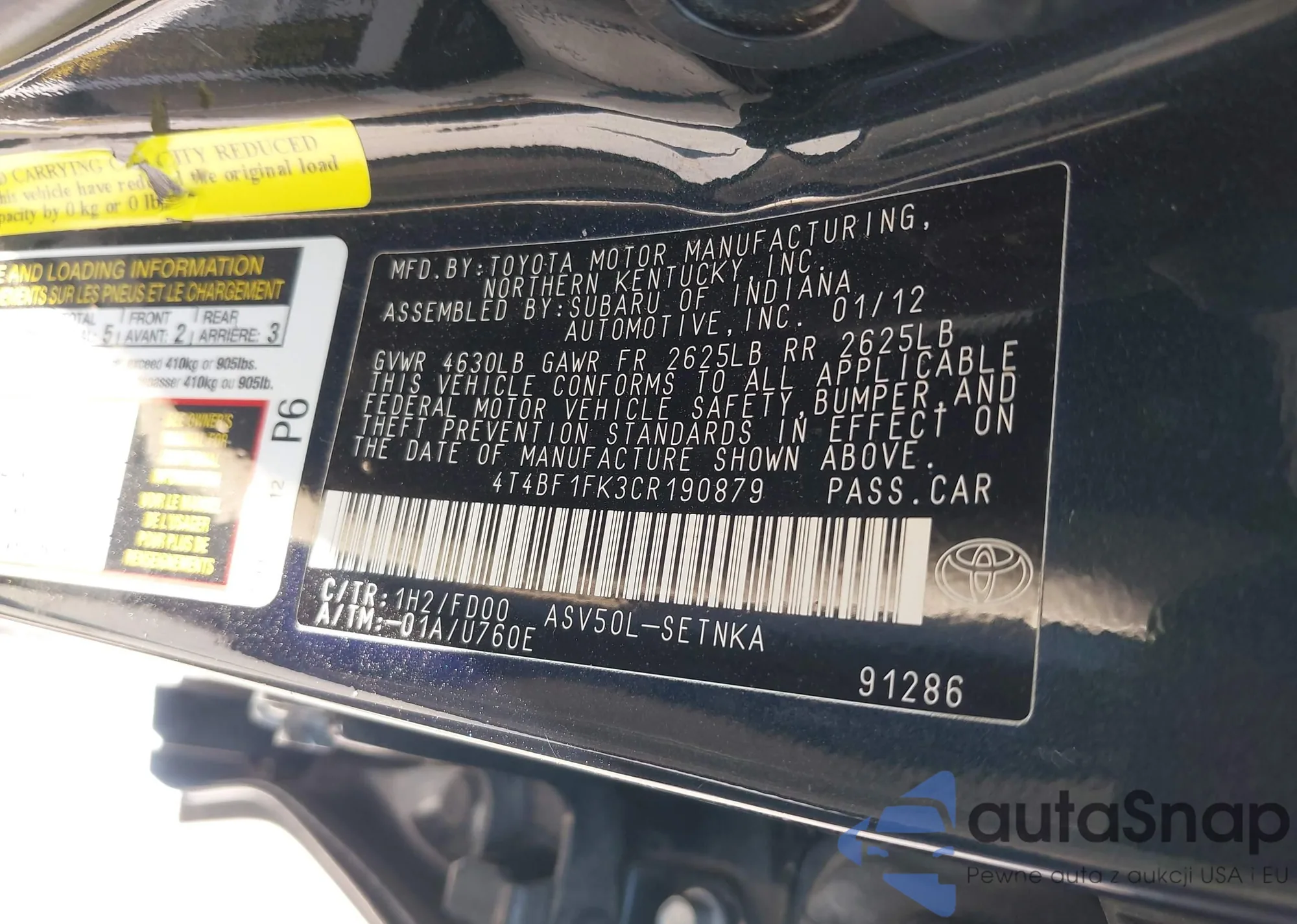 LOT: 43073907 VIN: 5TFST54117X001160