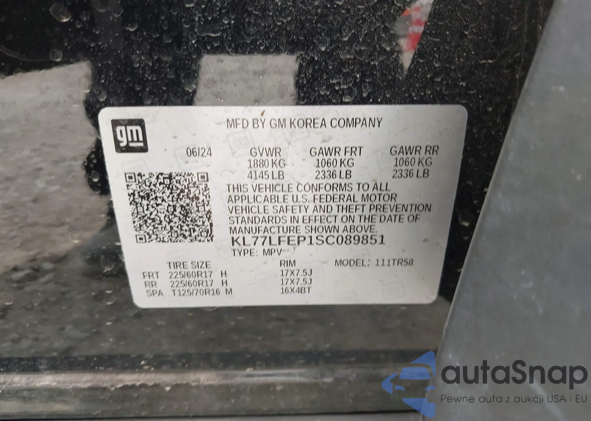 • VIN KL77LFEP1SC089851