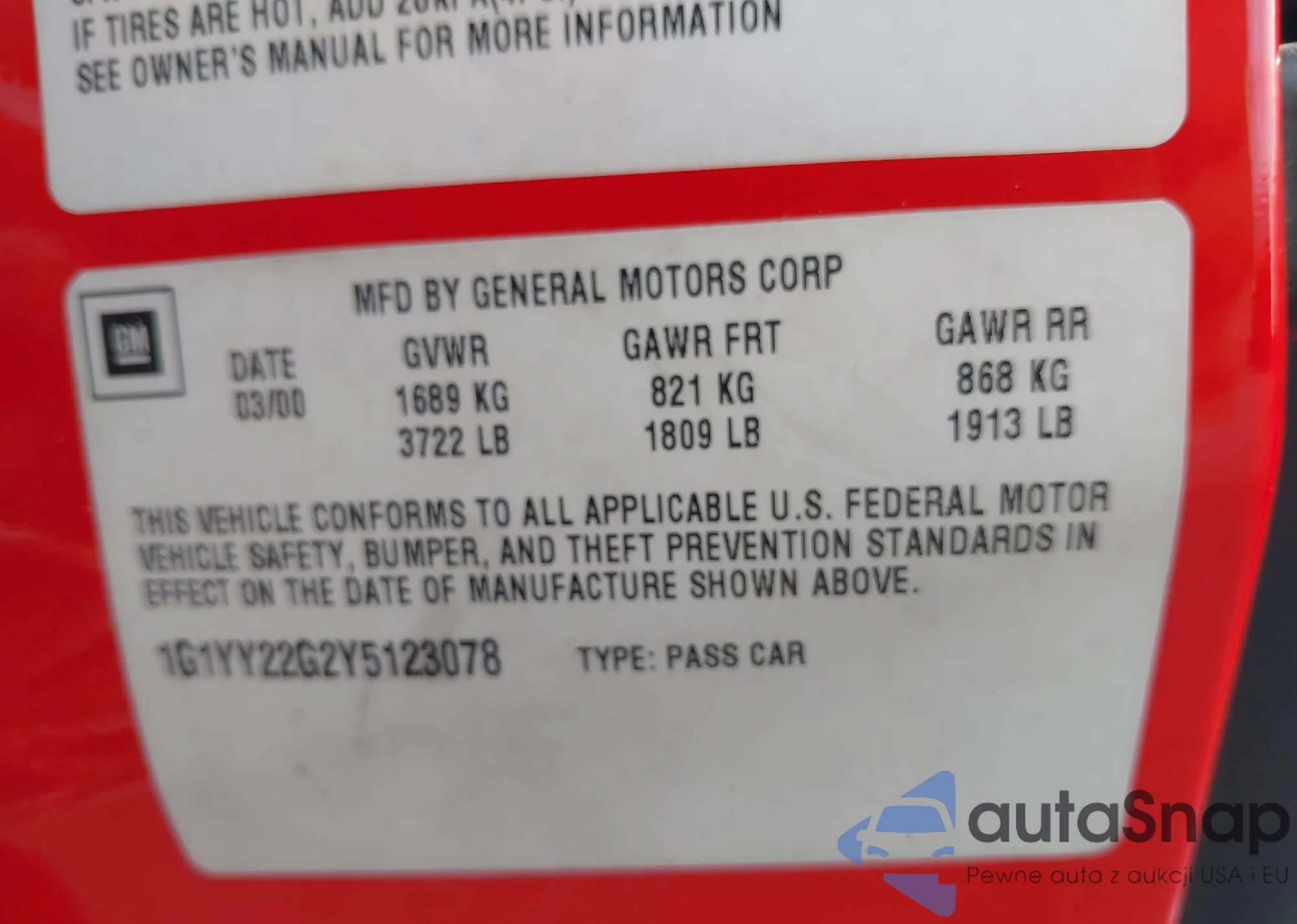 • VIN 1G1YY22G2Y5123078