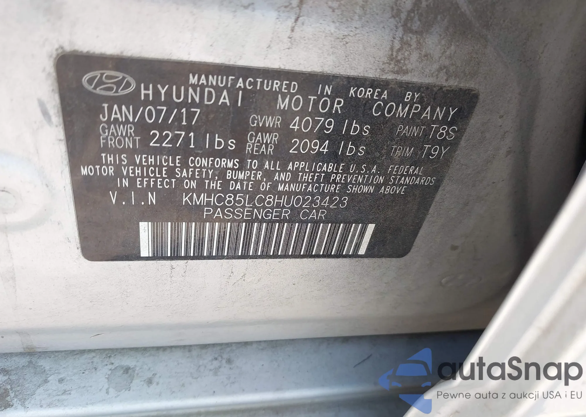 LOT: 43206858 VIN: KMHC85LC8HU023423
