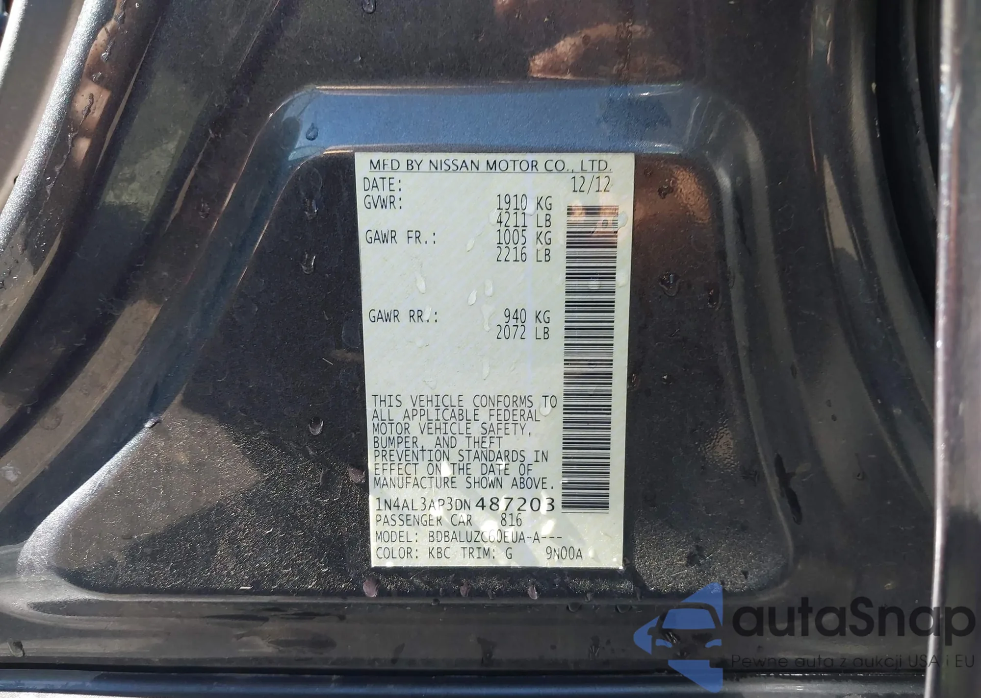 LOT: 43324832 VIN: 1N4AL3AP3DN487203