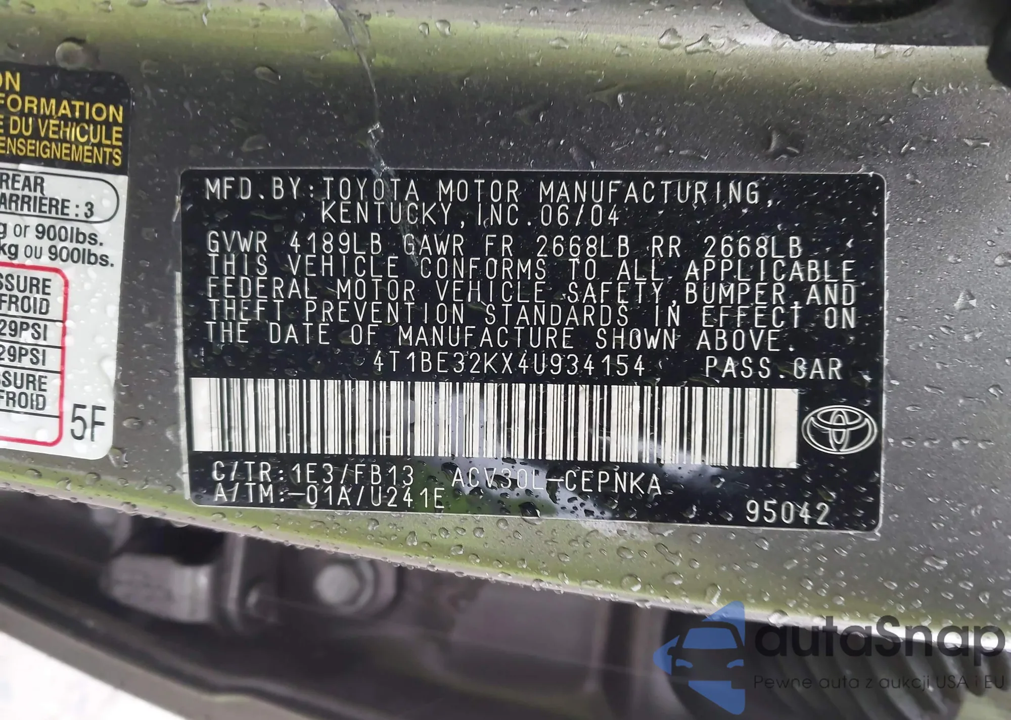 • VIN 4T1BE32KX4U934154