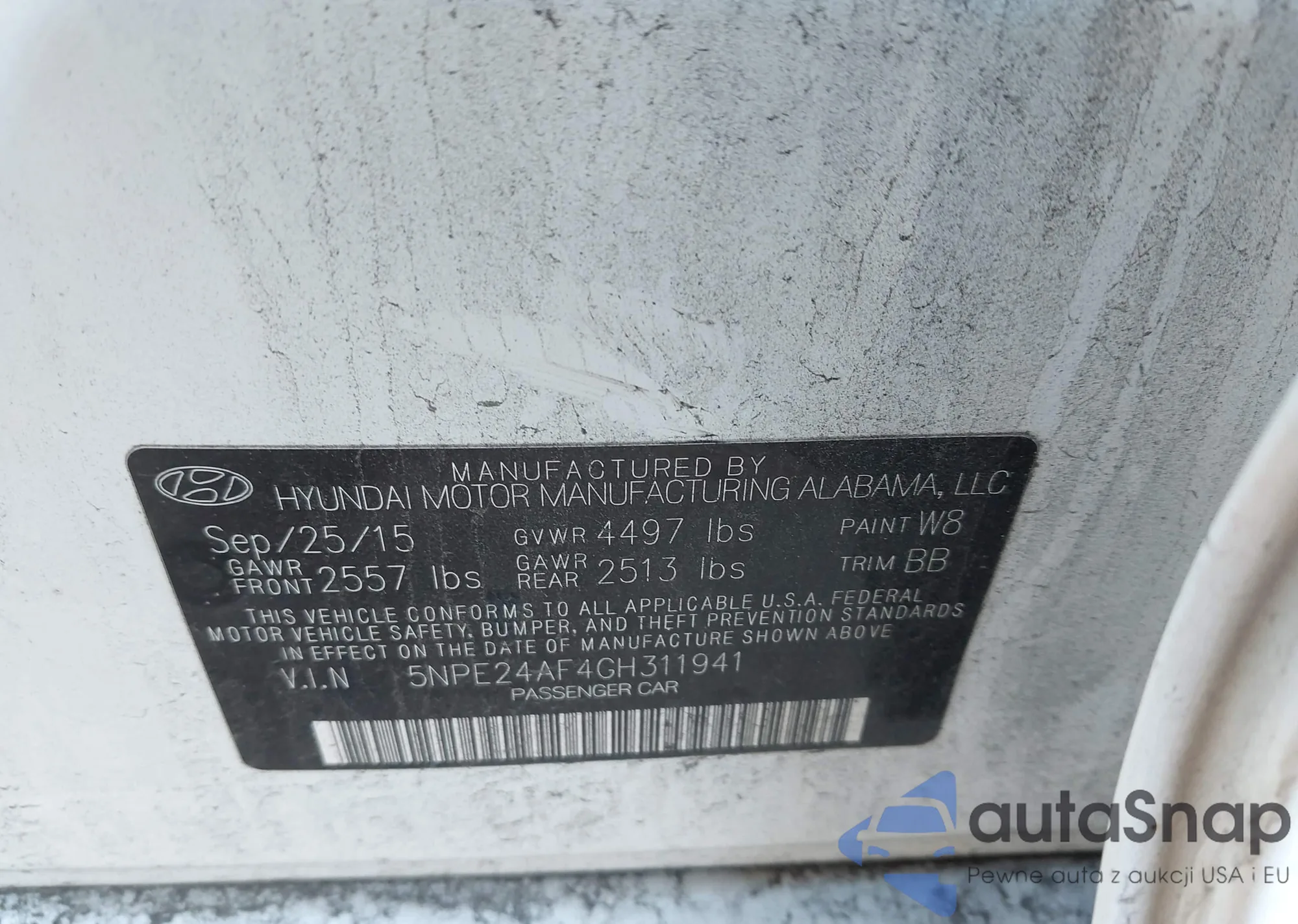 • VIN 5NPE24AF4GH311941