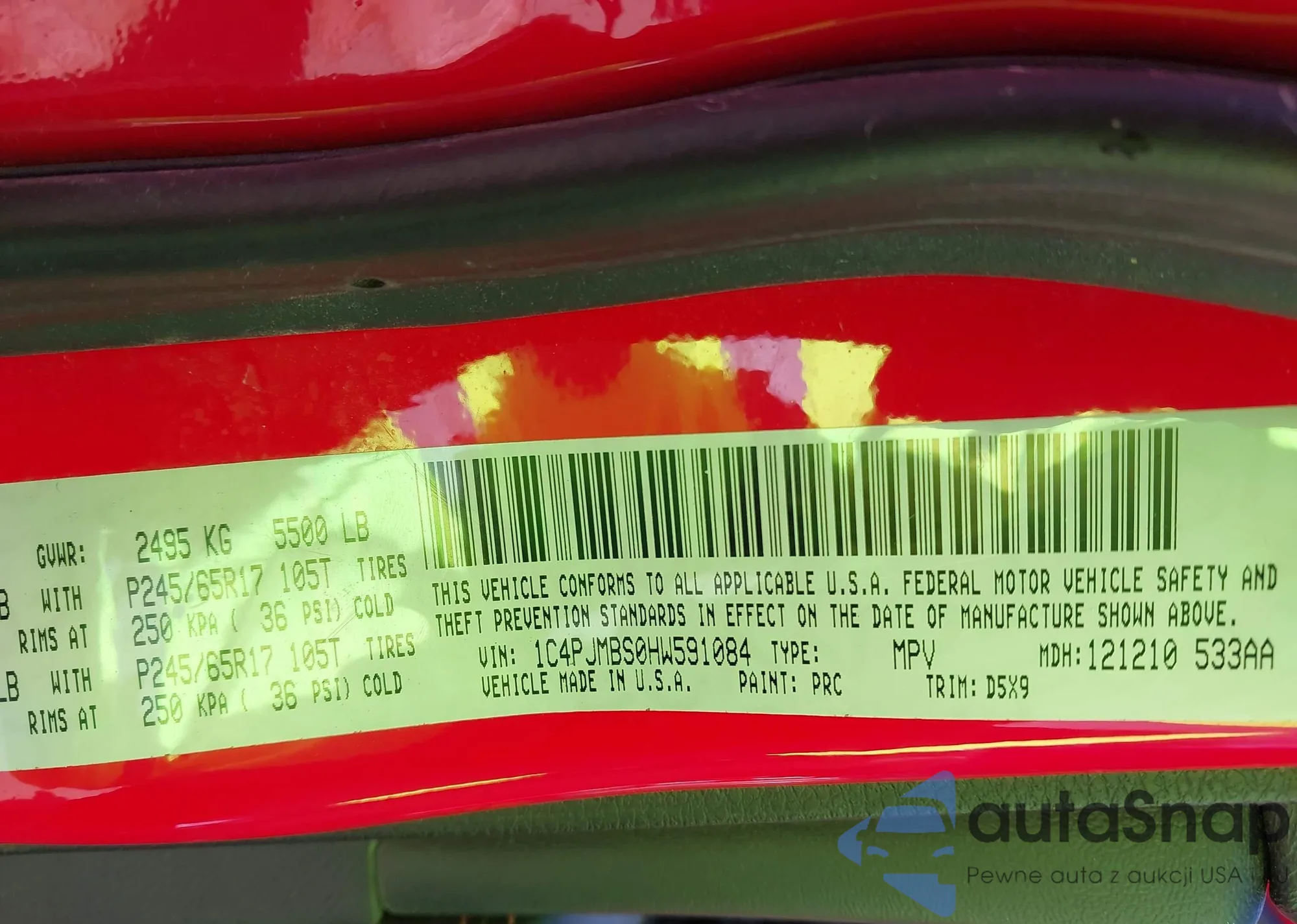 LOT: 43477571 VIN: 1C4PJMBS0HW591084