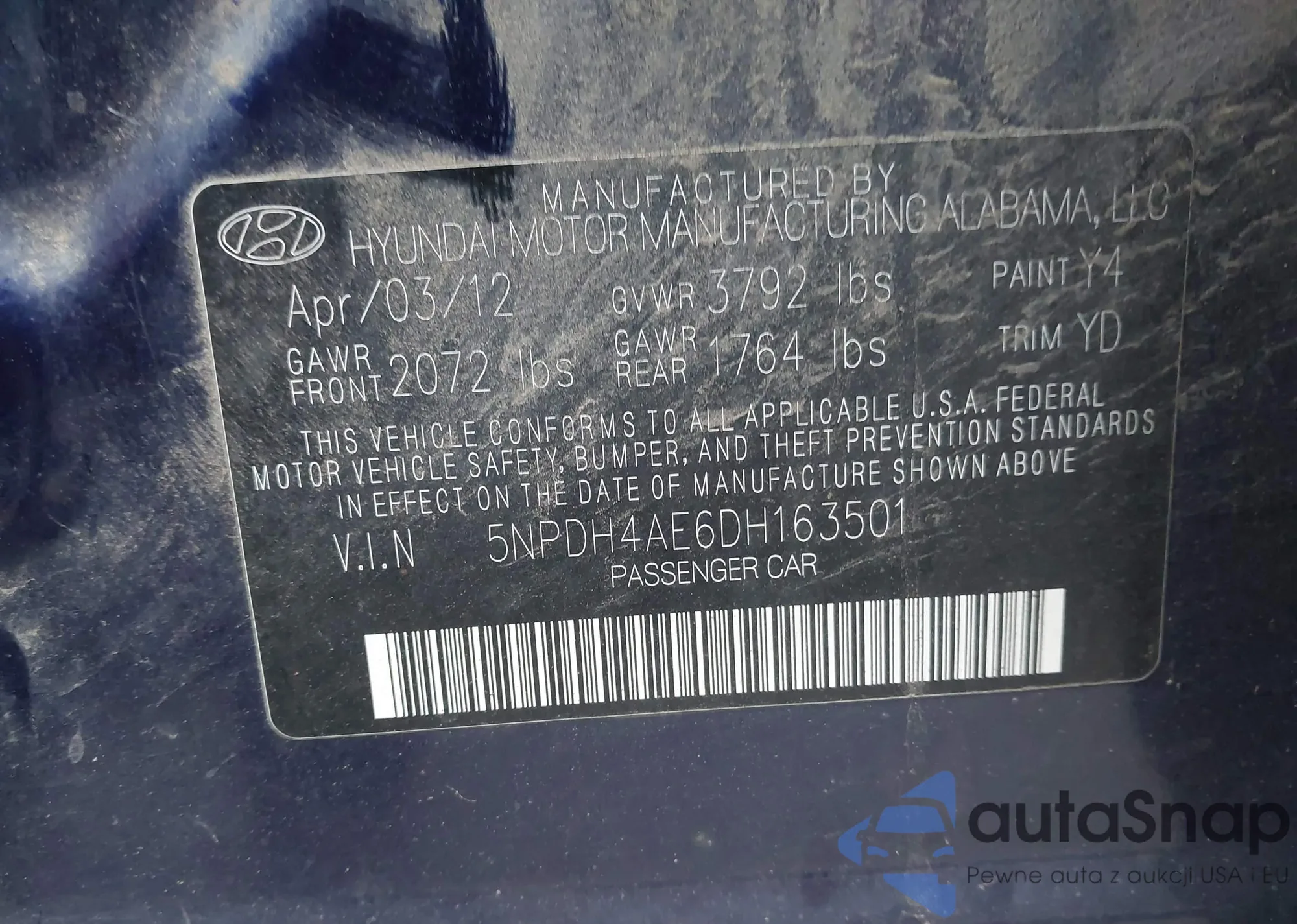 • VIN 5NPDH4AE6DH163501