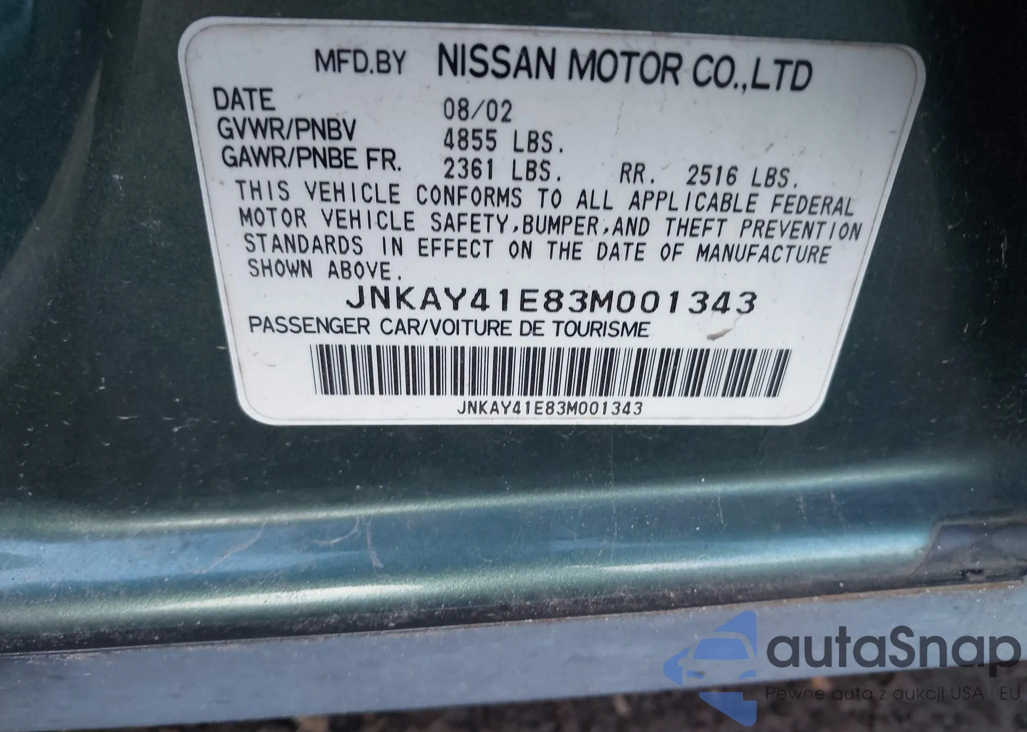 • VIN JNKAY41E83M001343