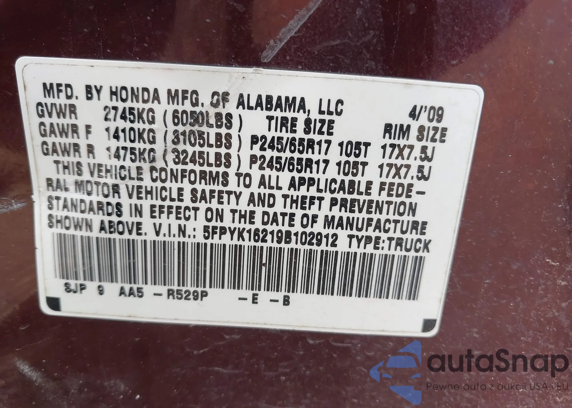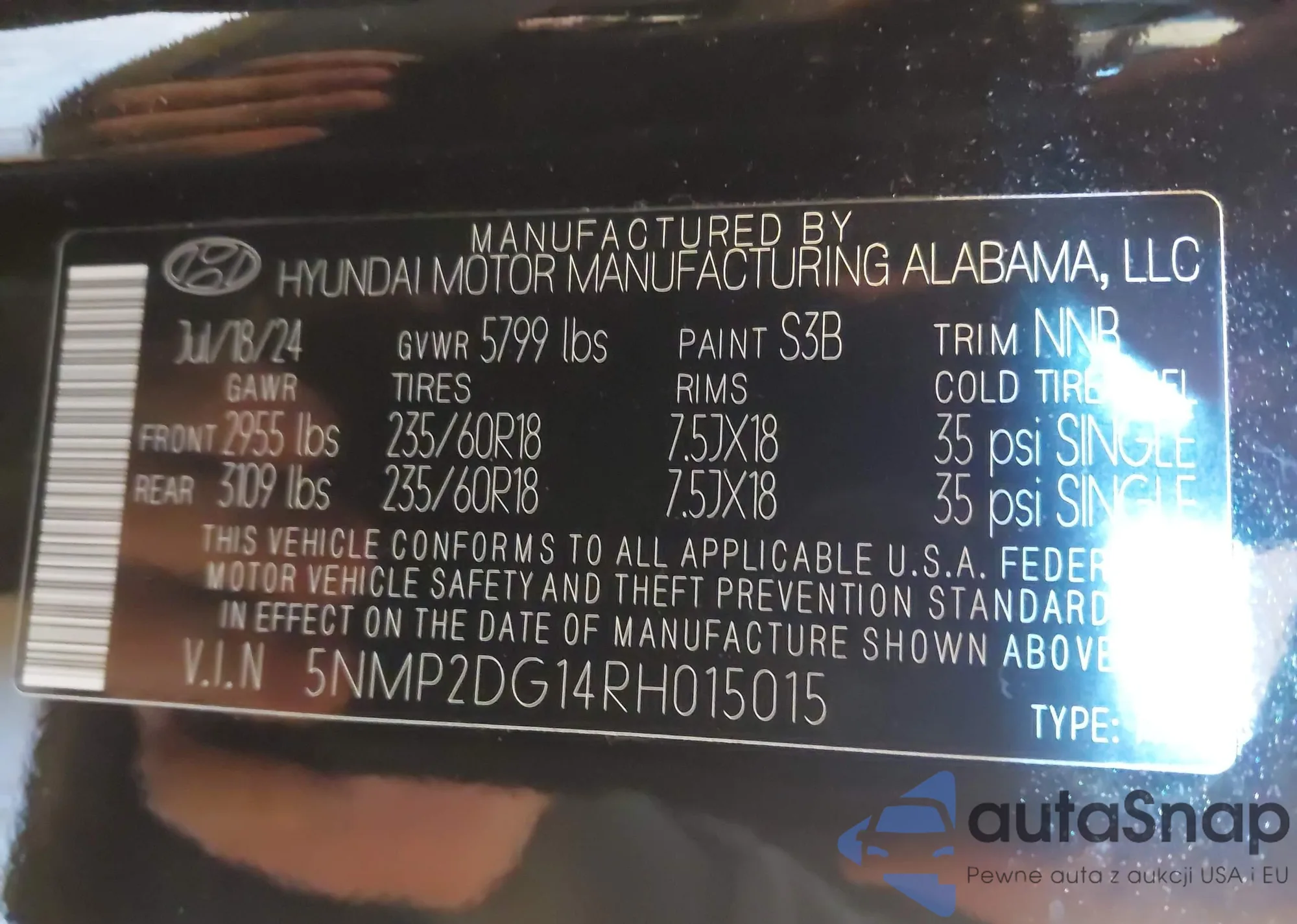 LOT: 43165515 VIN: 5NMP2DG14RH015015