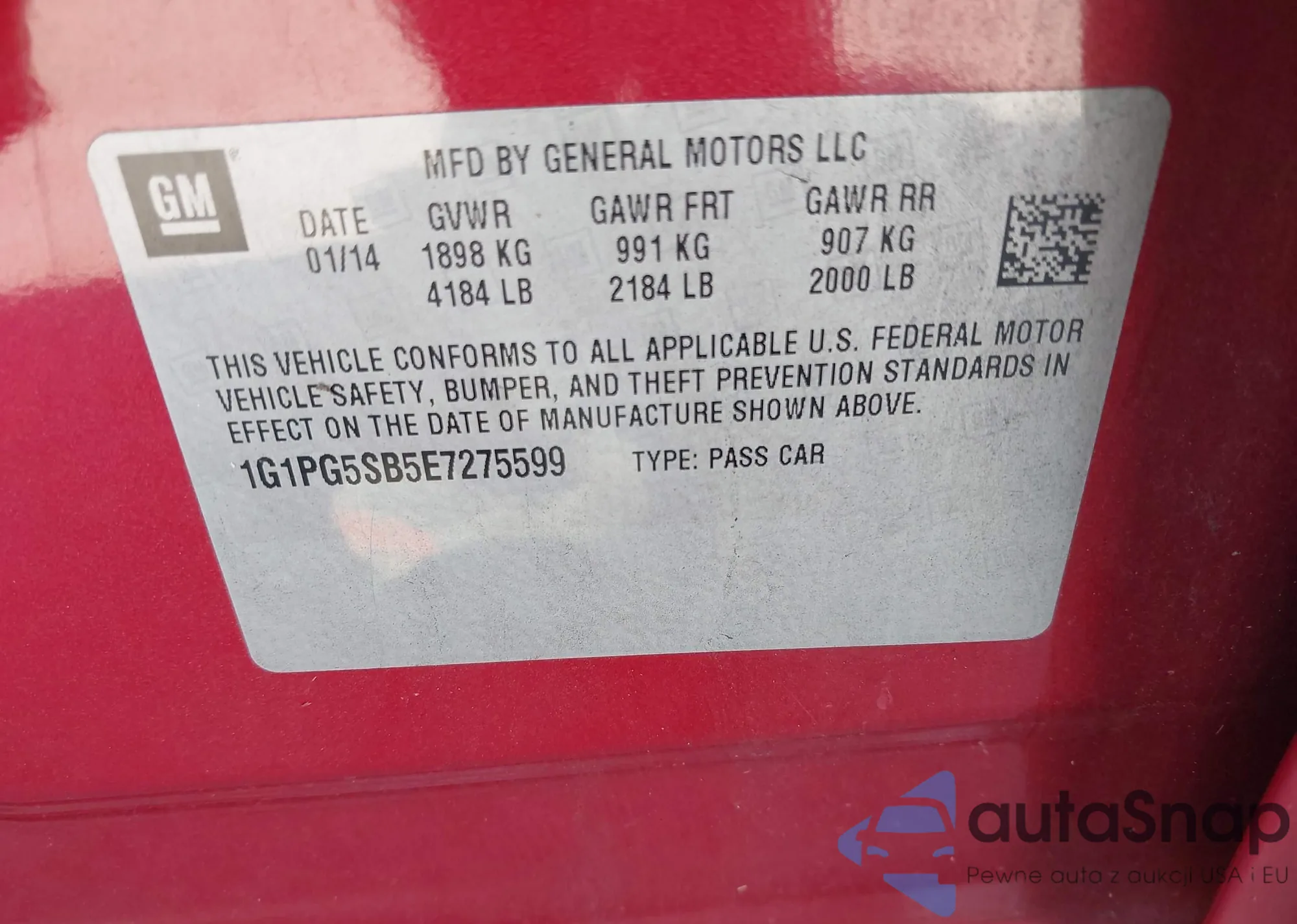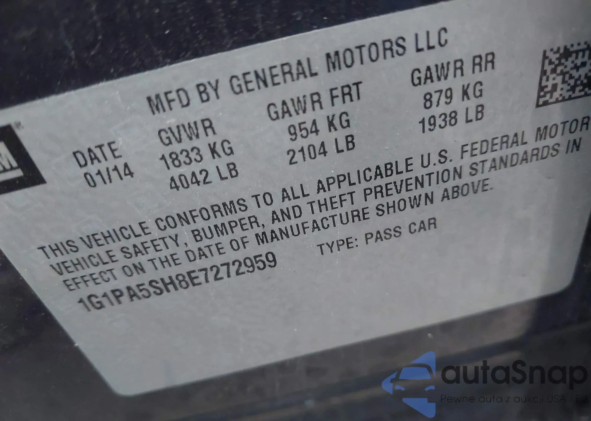 • VIN 1G1PA5SH8E7272959