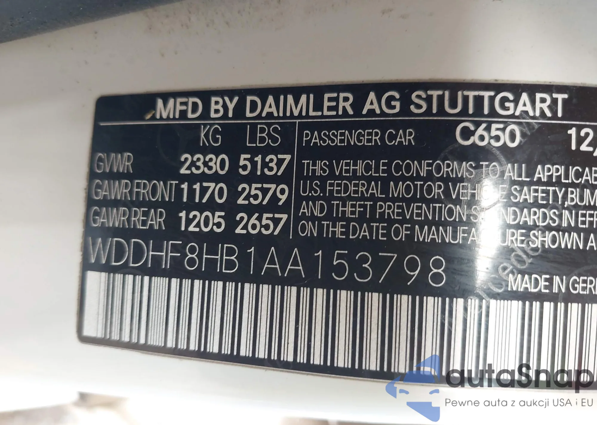 LOT: 43421926 VIN: WDDHF8HB1AA153798