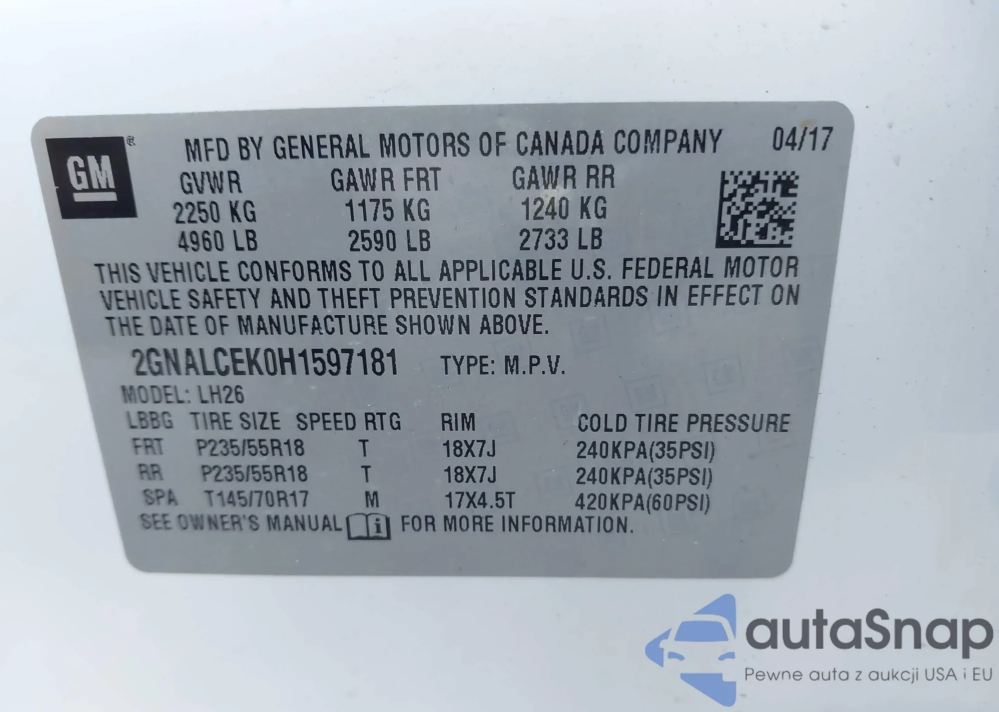 • VIN 2GNALCEK0H1597181