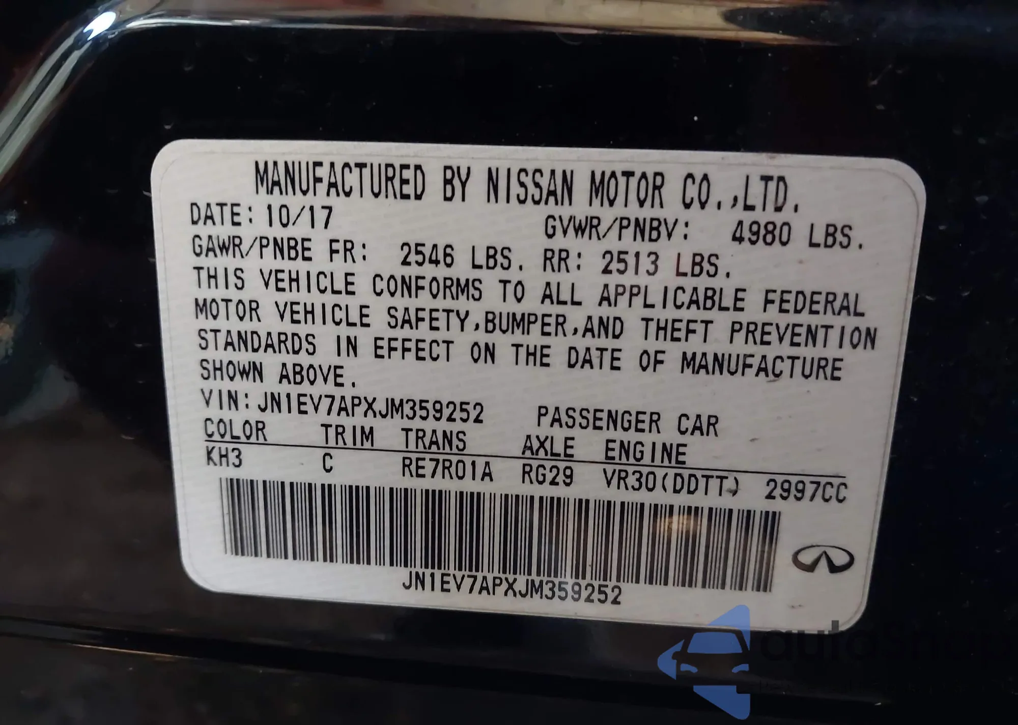 LOT: 43450872 VIN: JN1EV7APXJM359252