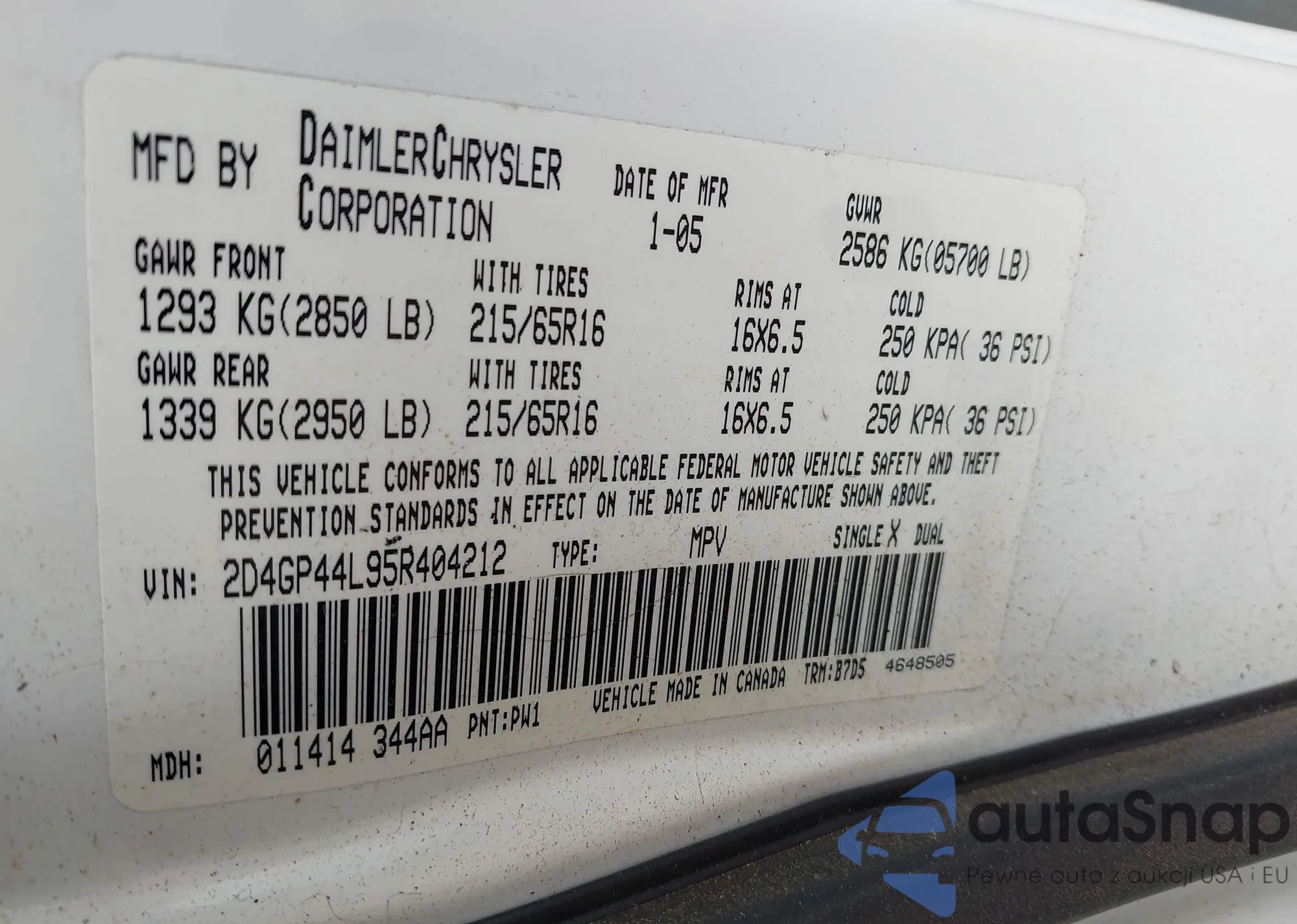 • VIN KNAFX4A80E5105453