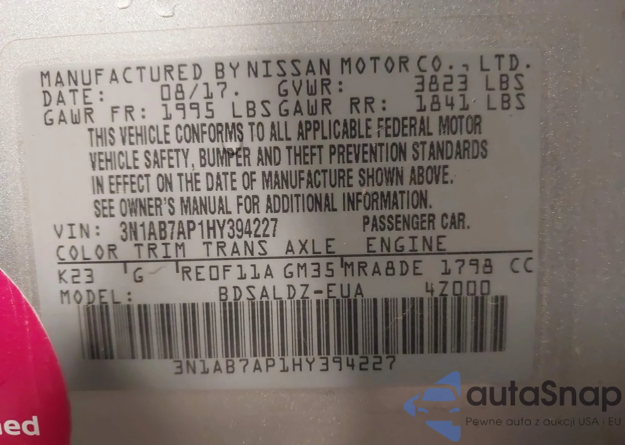 • VIN 3N1AB7AP1HY394227