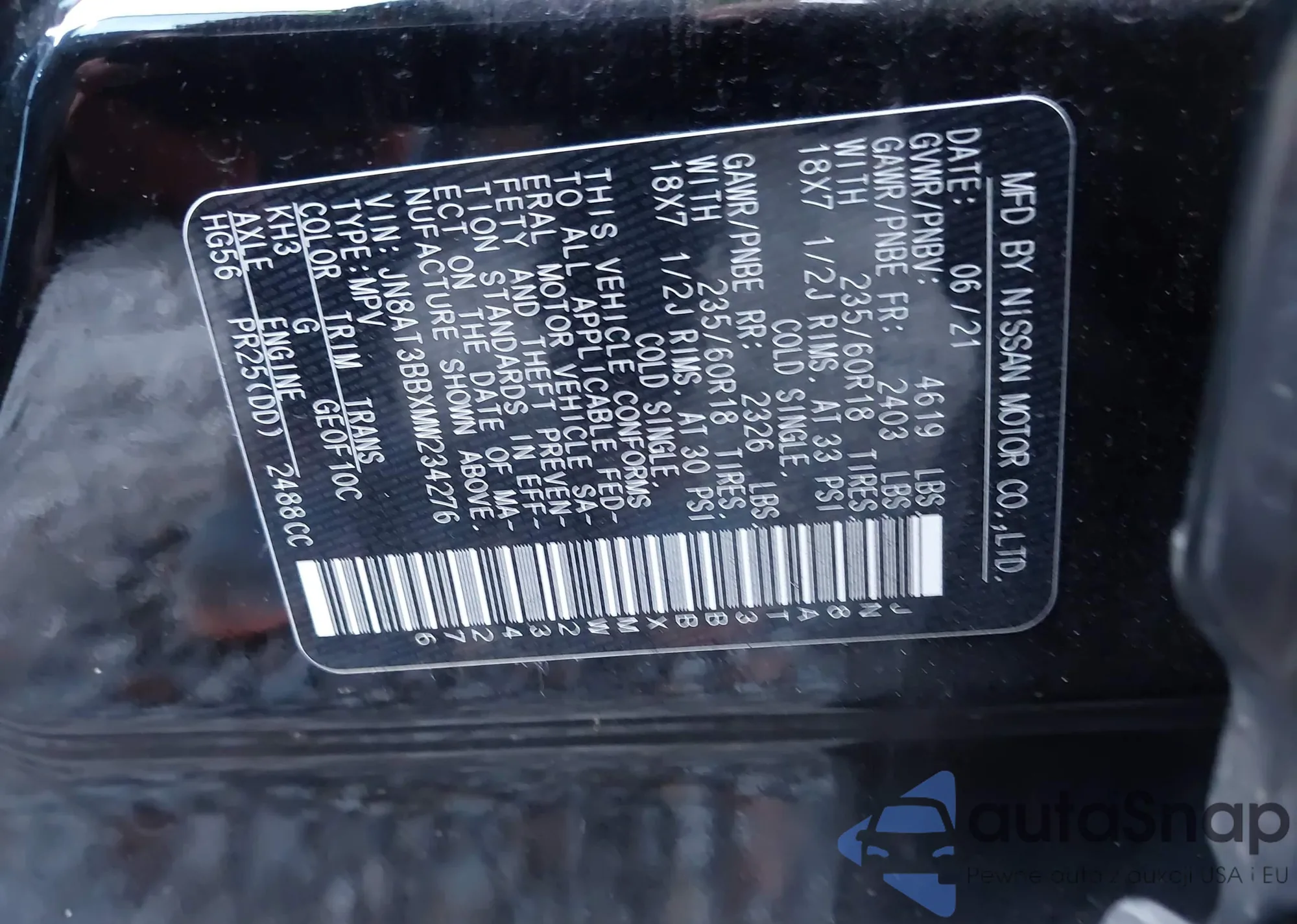 LOT: 43458230 VIN: JN8AT3BBXMW234276