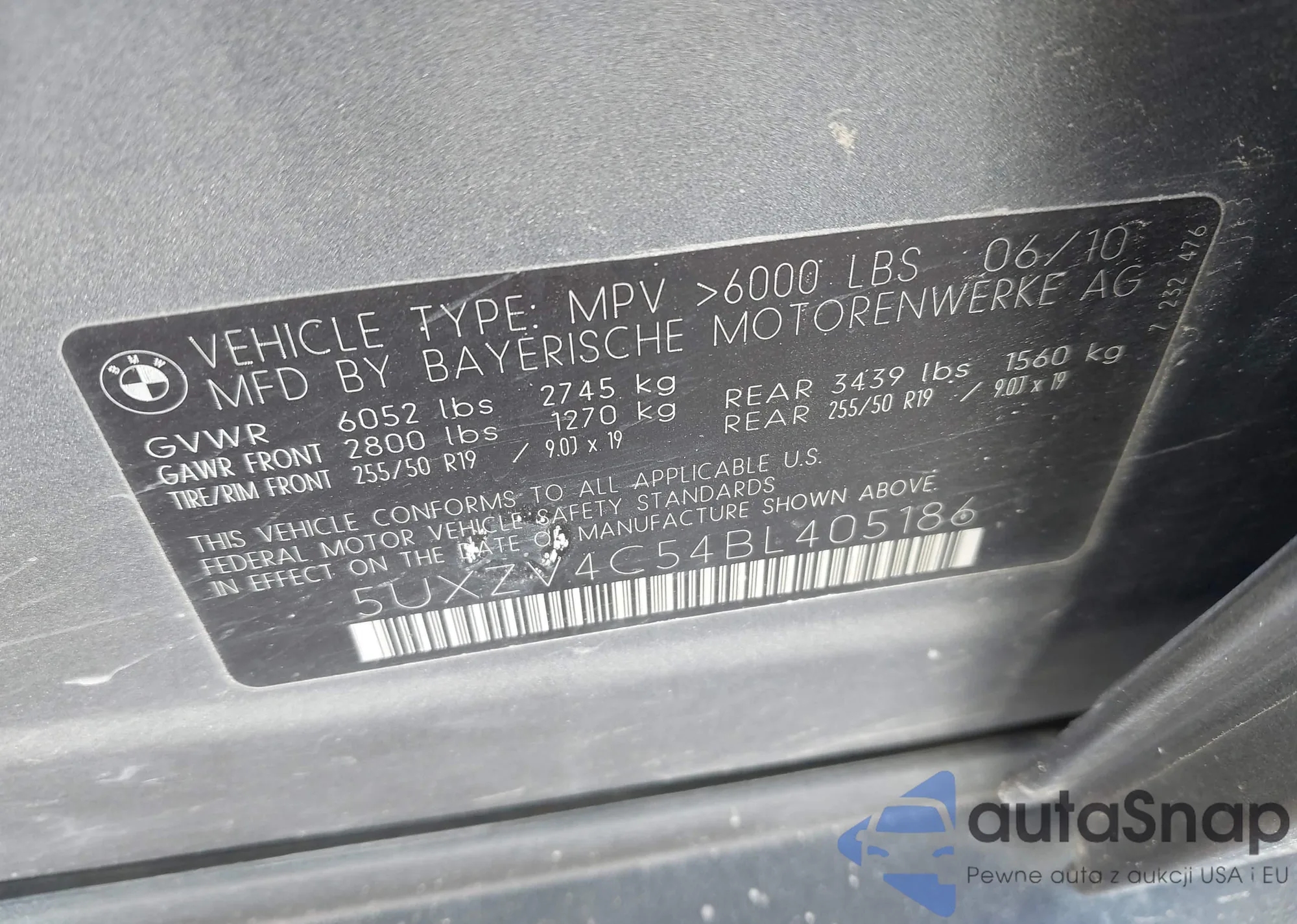• VIN 5UXZV4C54BL405186