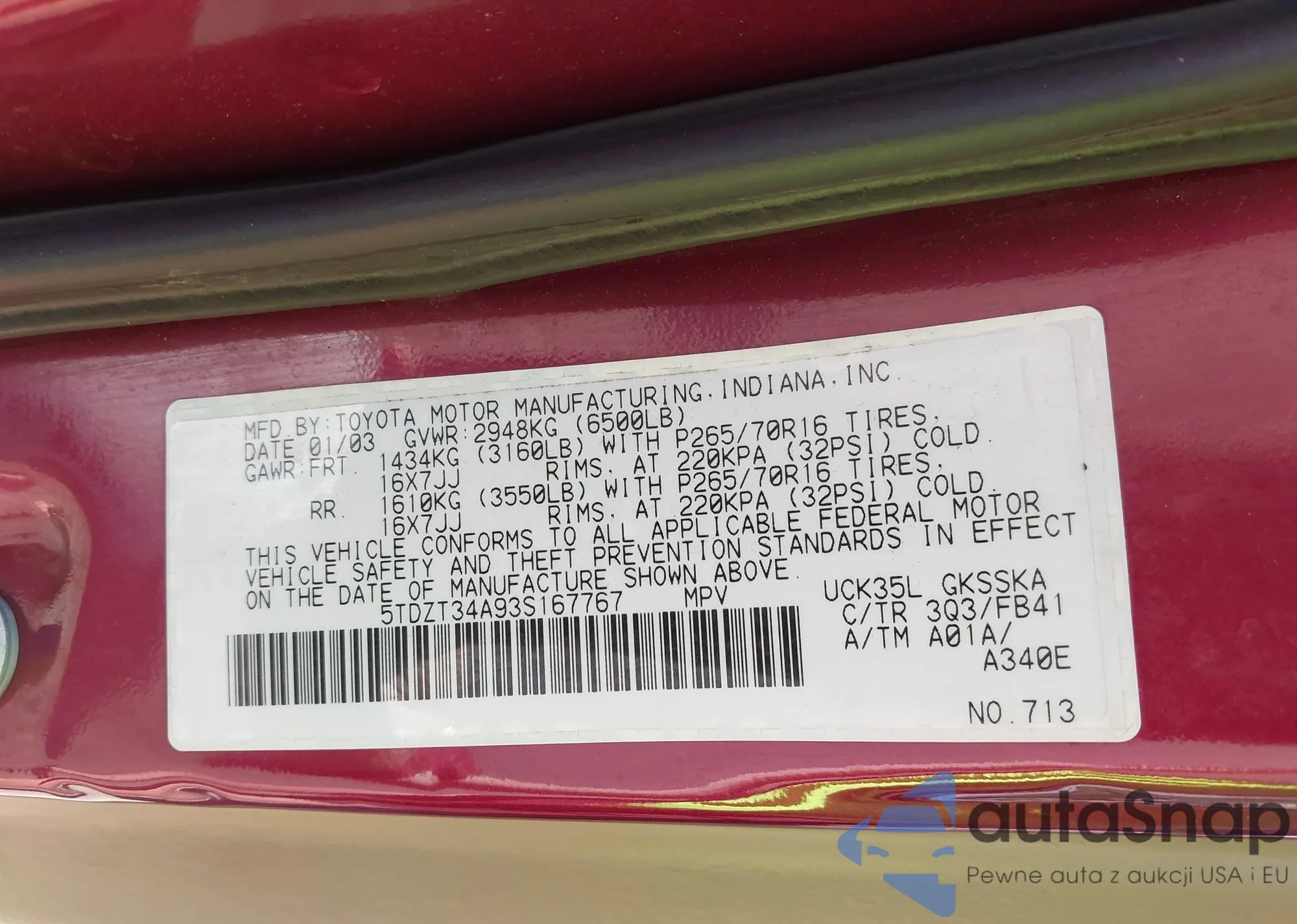 LOT: 43619185 VIN: JTDKAMFP4M3183974