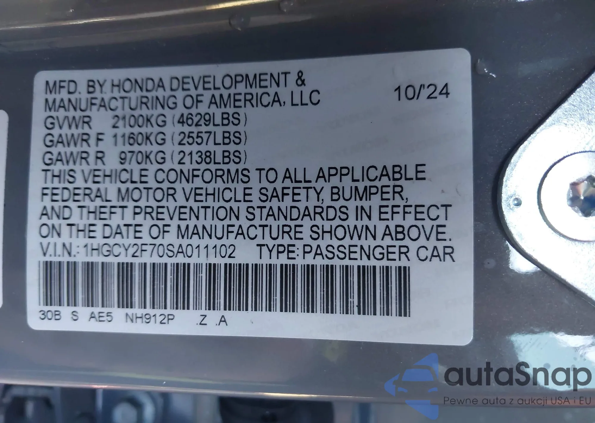 • VIN 4T1B11HK7JU067069