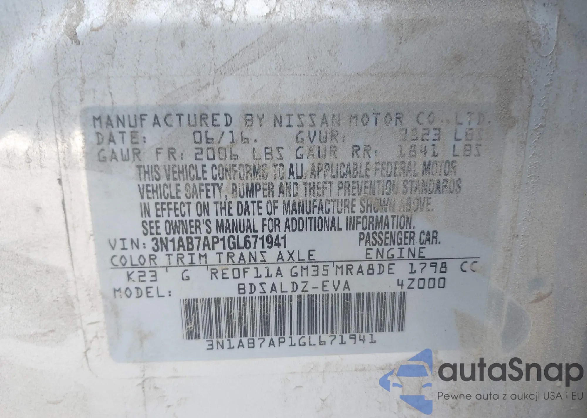 • VIN 3N1AB7AP1GL671941