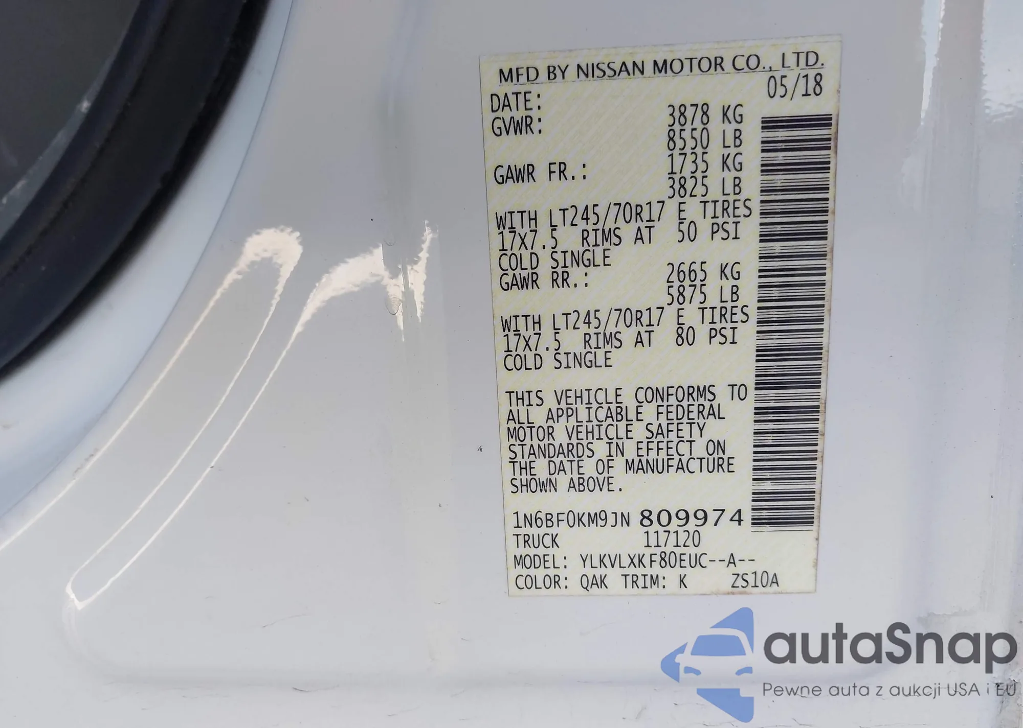 • VIN 1N6BF0KM9JN809974