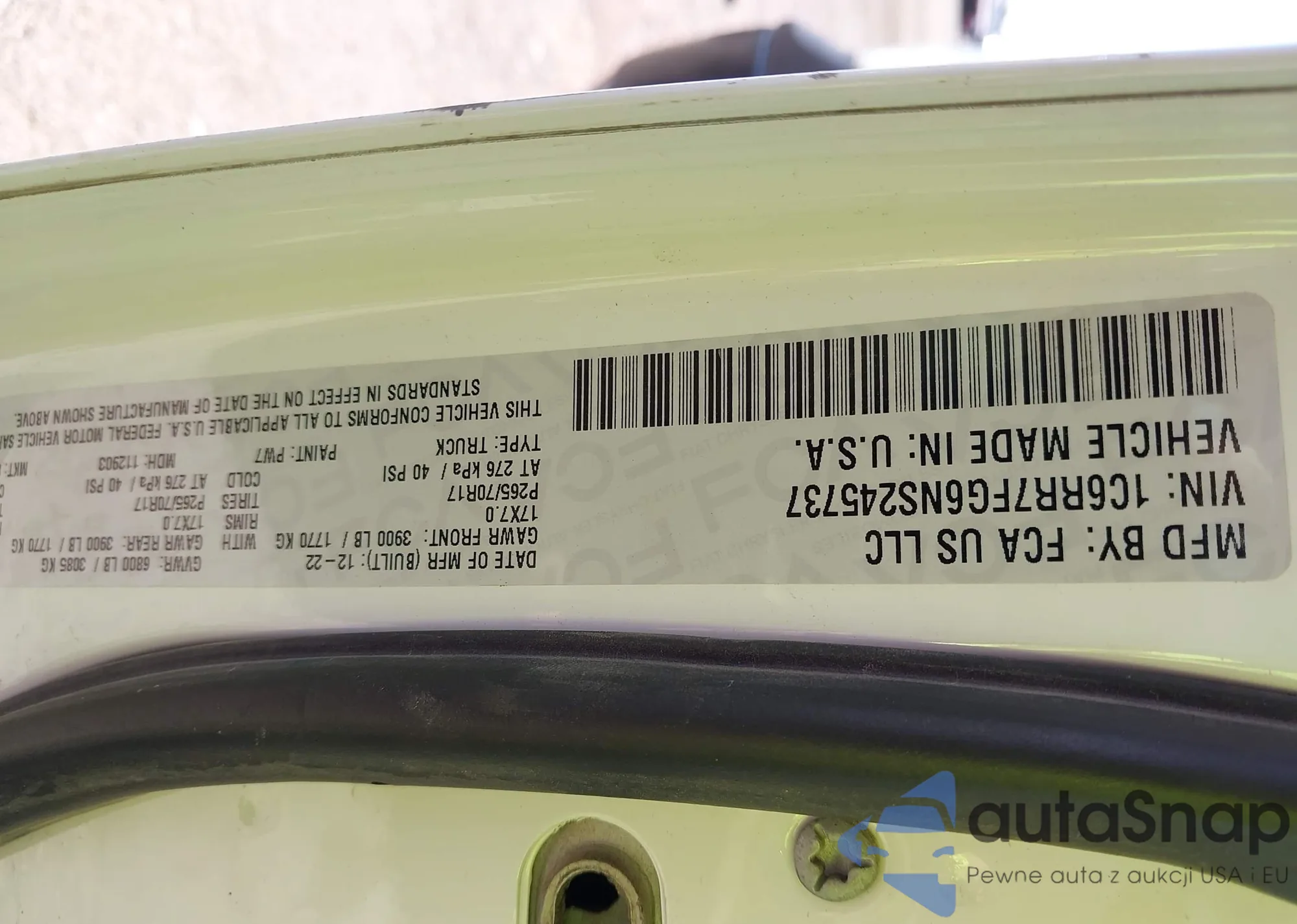• VIN 1C6RR7FG6NS245737