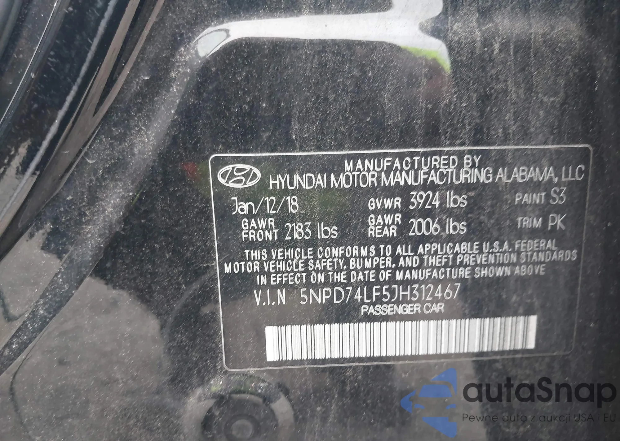 LOT: 43333877 VIN: 5NPD74LF5JH312467
