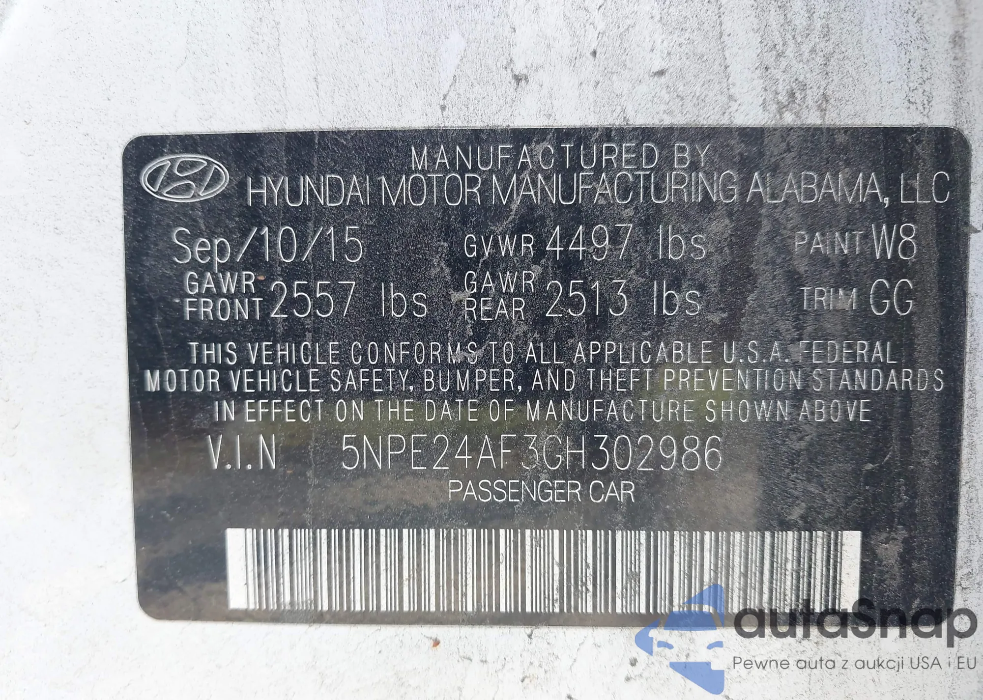 • VIN 5NPE24AF3GH302986