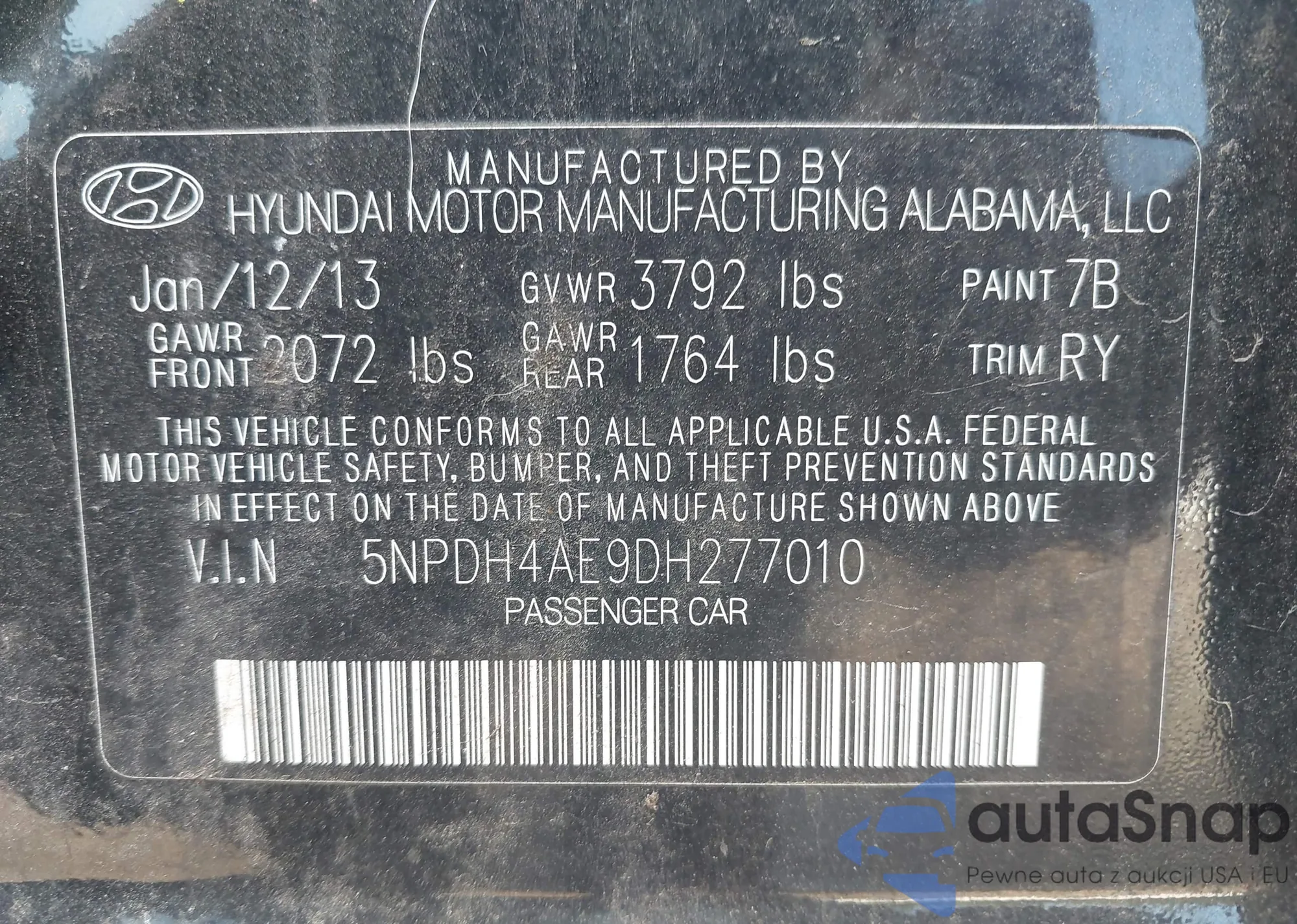 • VIN 5NPDH4AE9DH277010