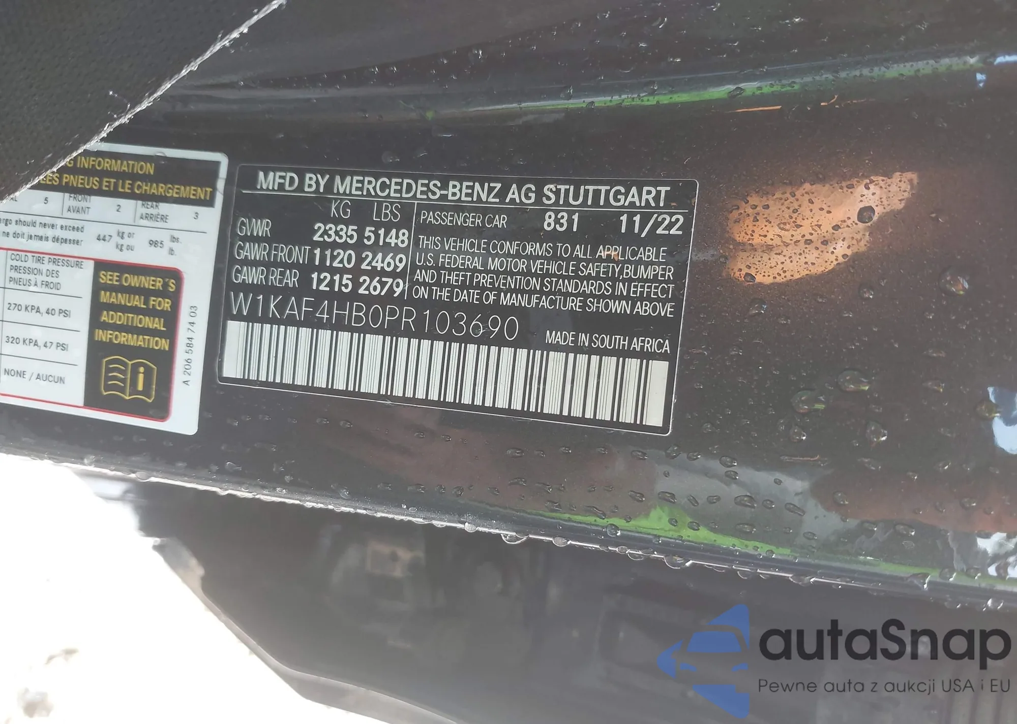 • VIN W1KAF4HB0PR103690