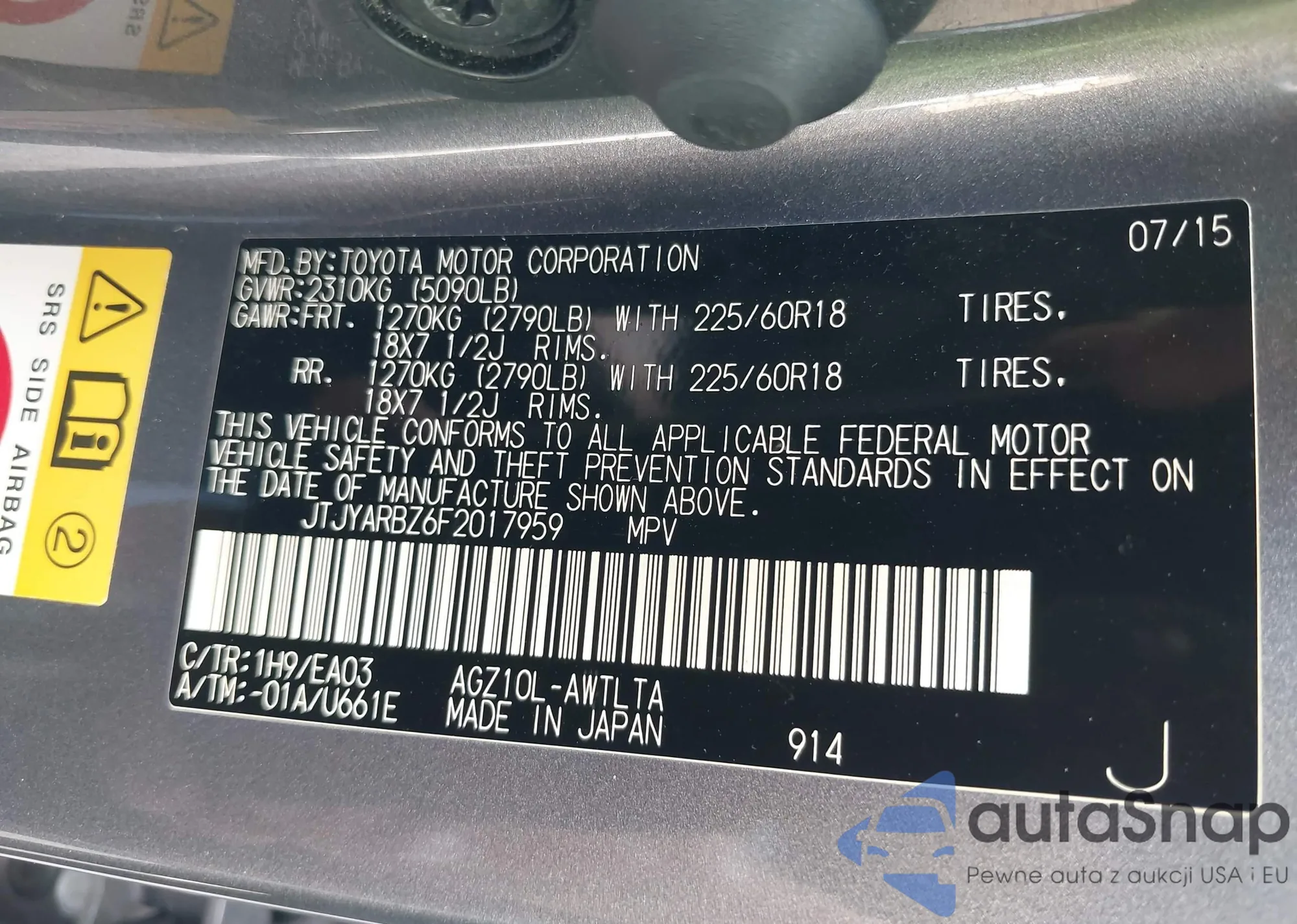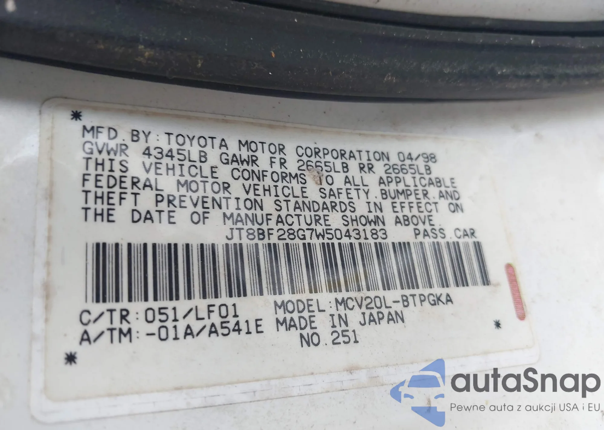 LOT: 42171853 VIN: JT8BF28G7W5043183