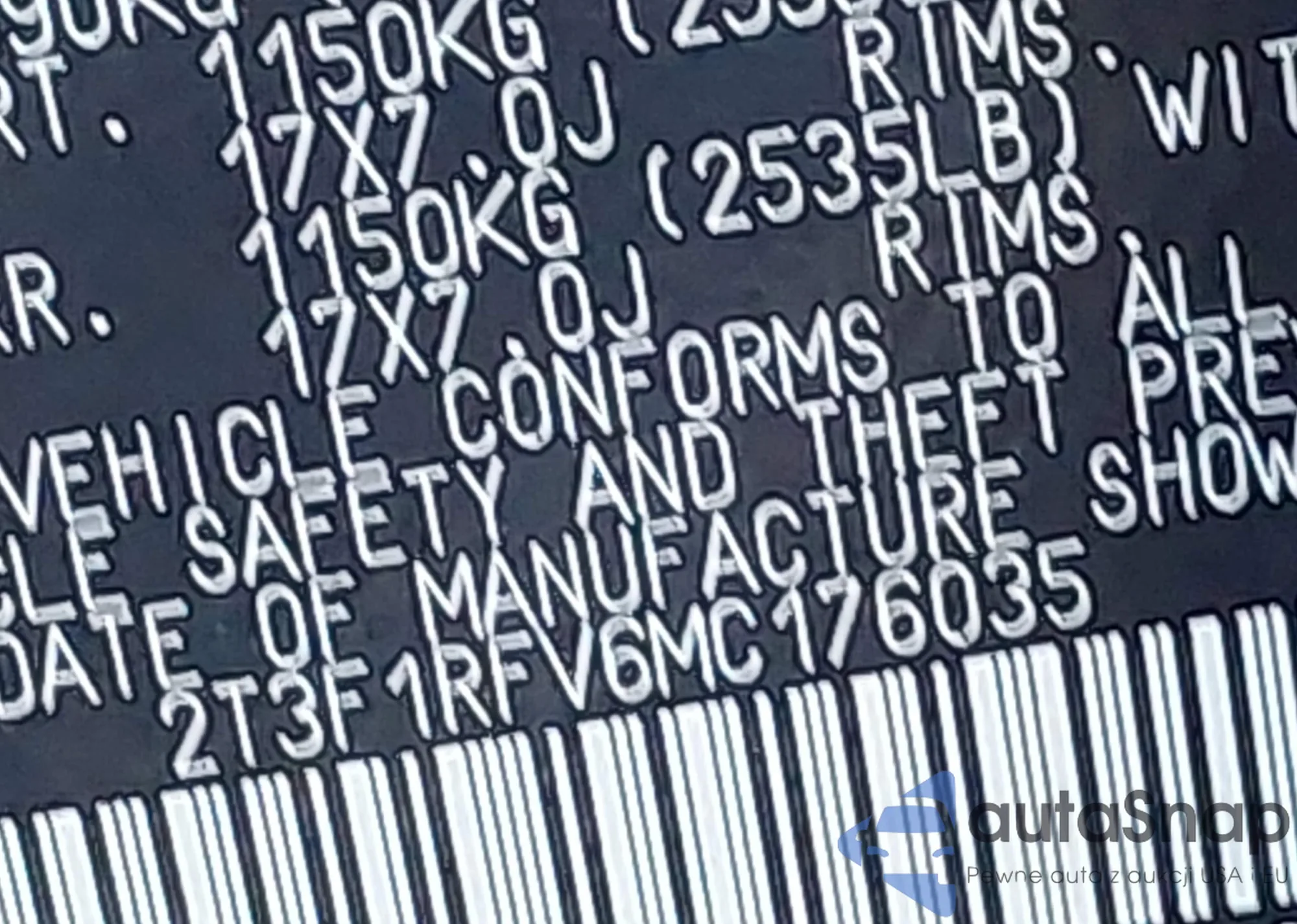 • VIN 2T3F1RFV6MC176035