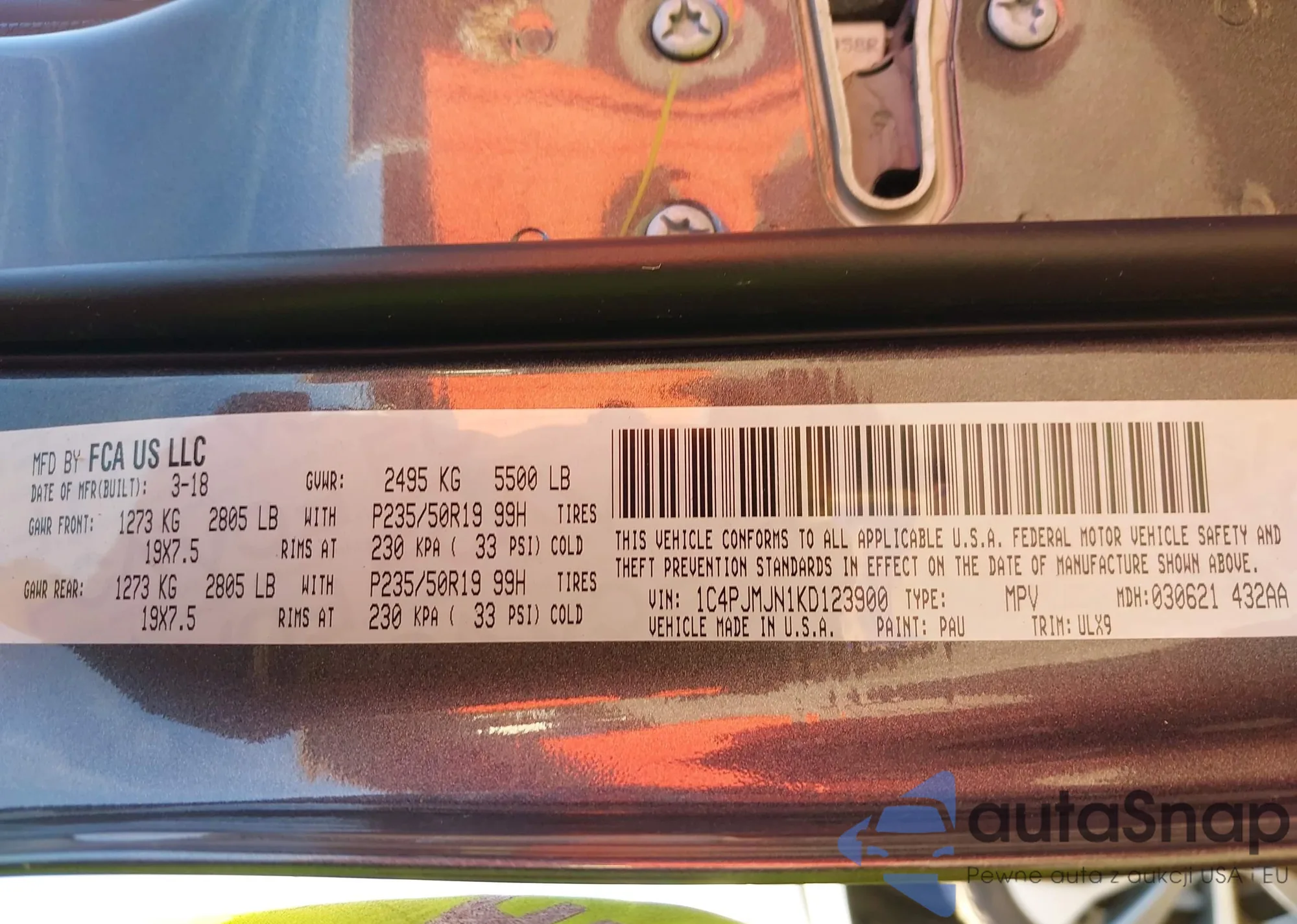 LOT: 43350986 VIN: 1C4PJMJN1KD123900