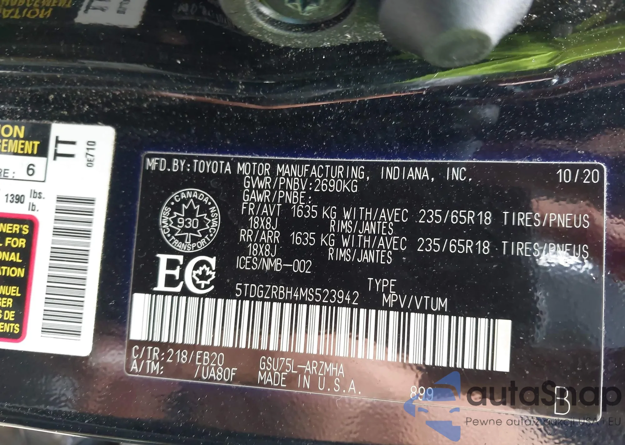 • VIN 5TDGZRBH4MS523942
