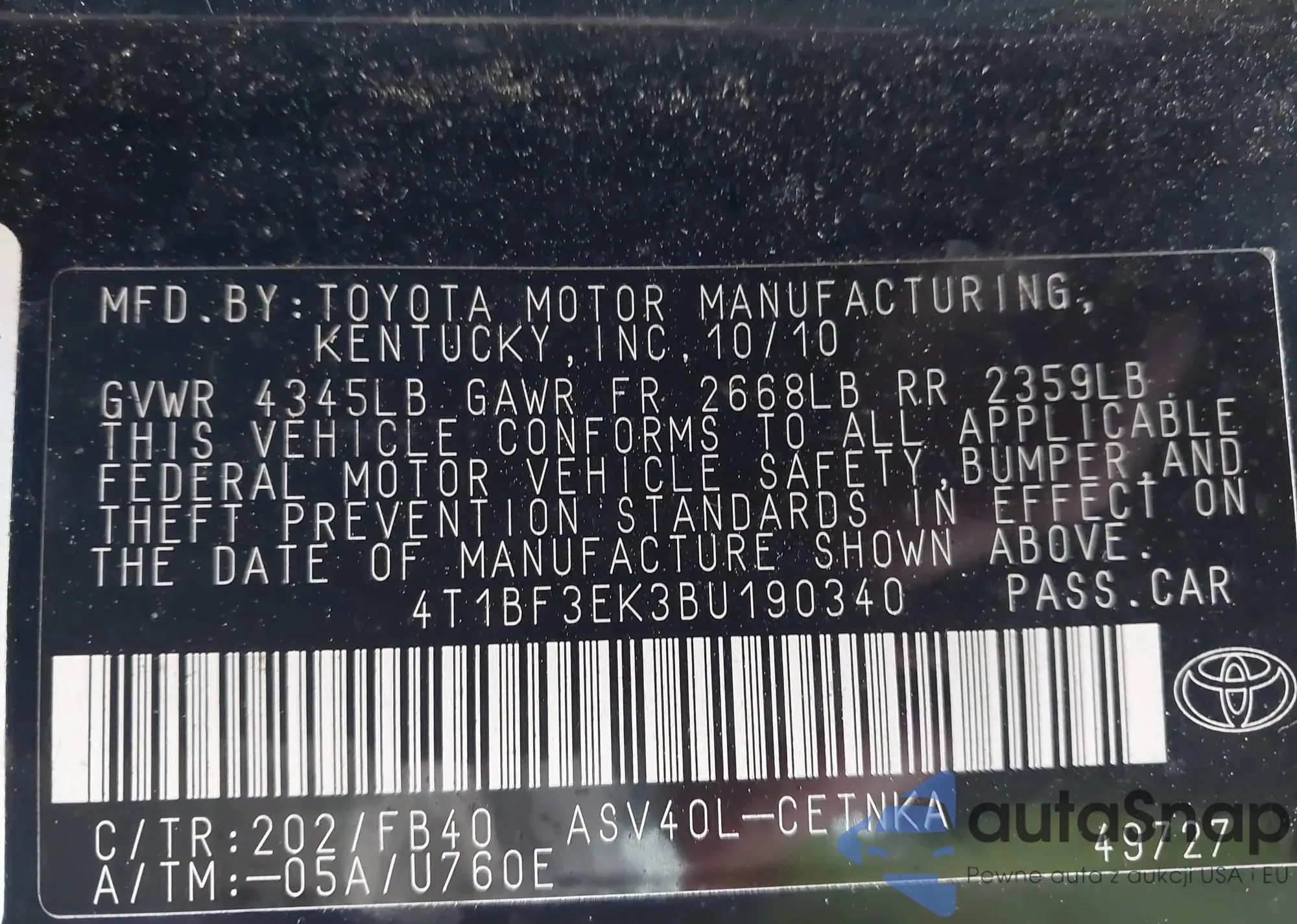 • VIN JT8BF28G7W5043183
