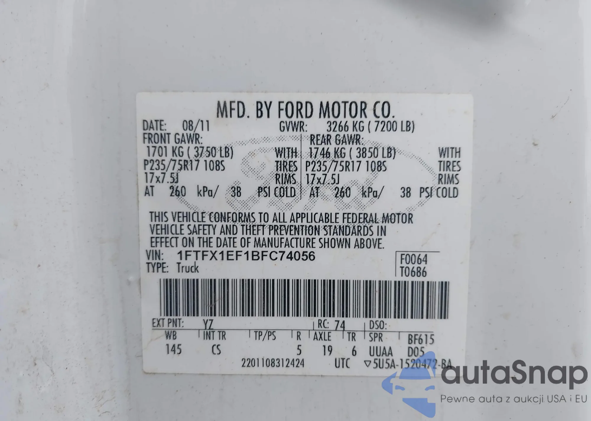 • VIN 4T1BF3EK1BU203425