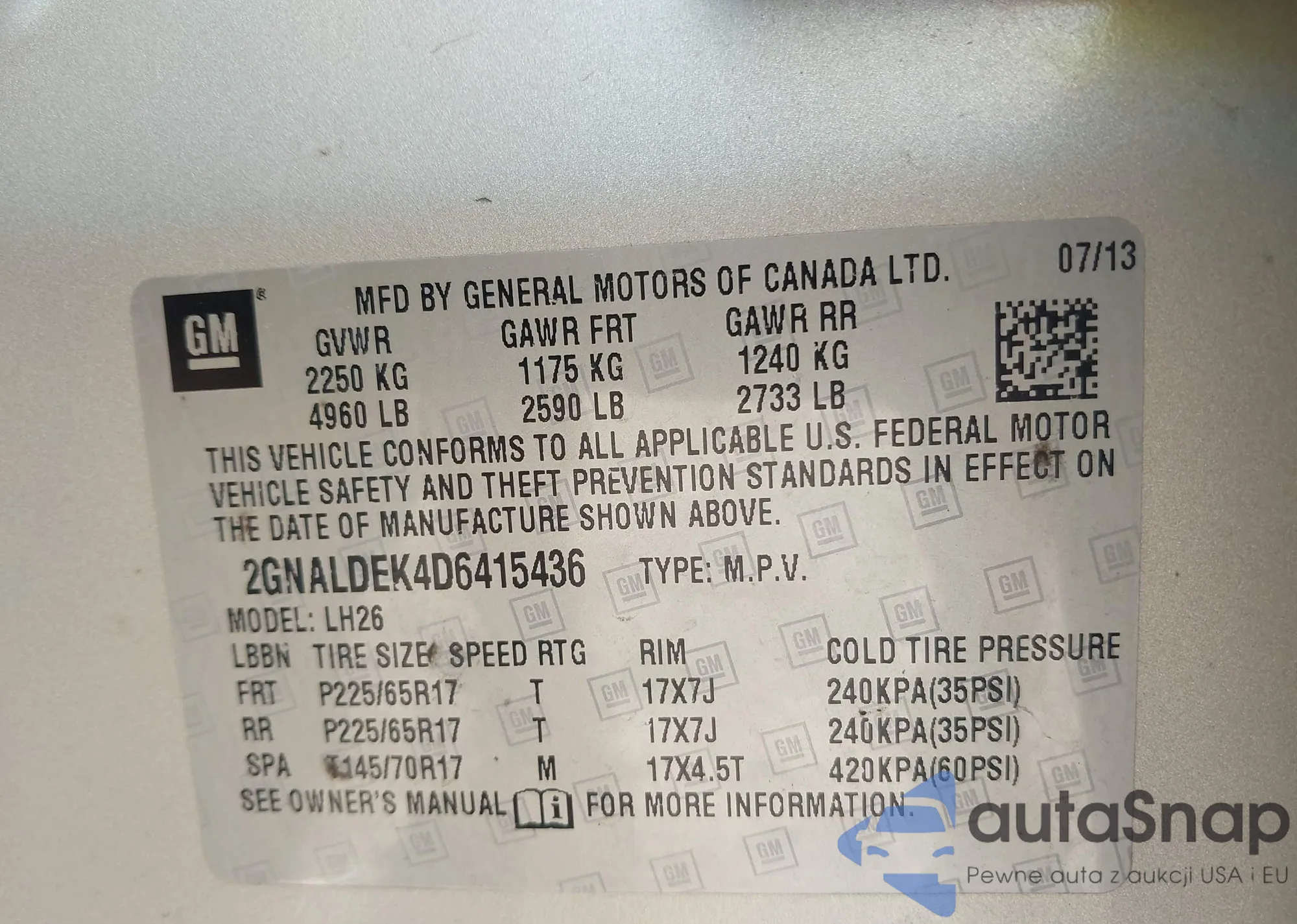 • VIN 2GNALDEK4D6415436