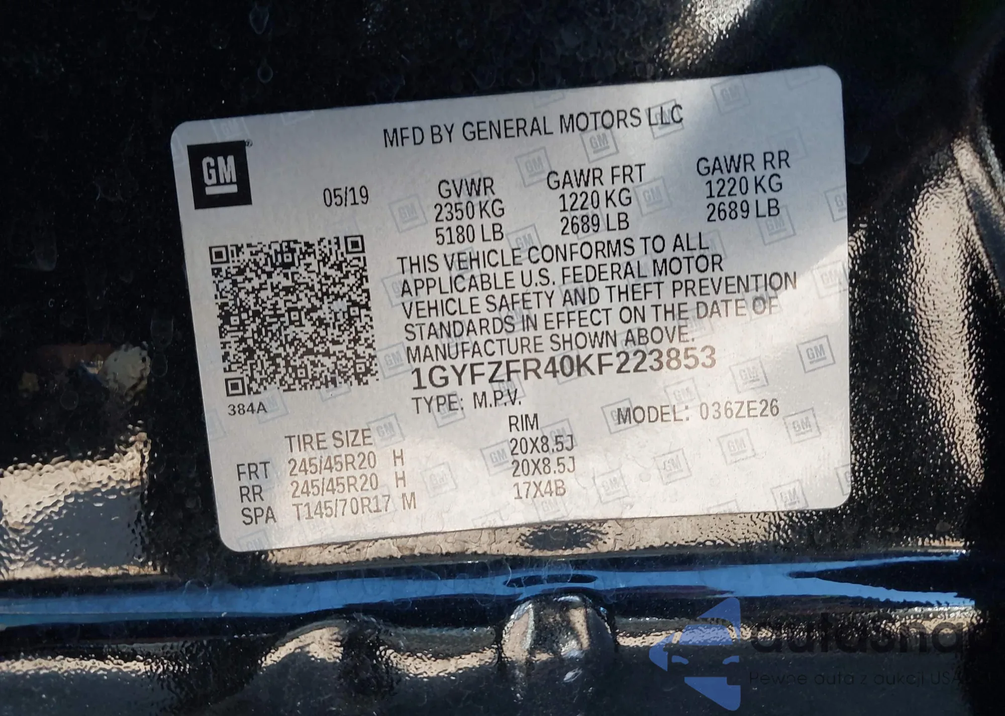 LOT: 43393068 VIN: 1GYFZFR40KF223853