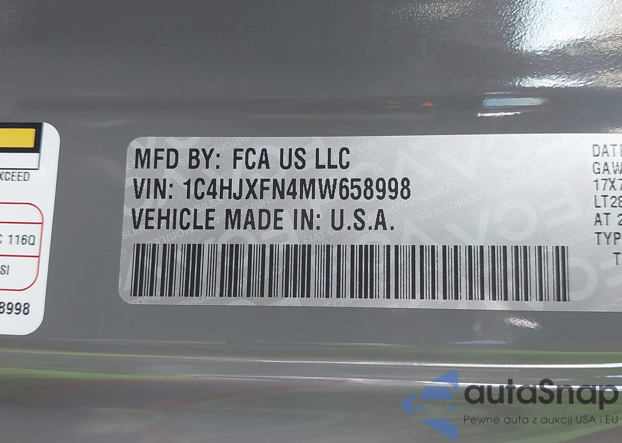 • VIN 1C4HJXFN4MW658998