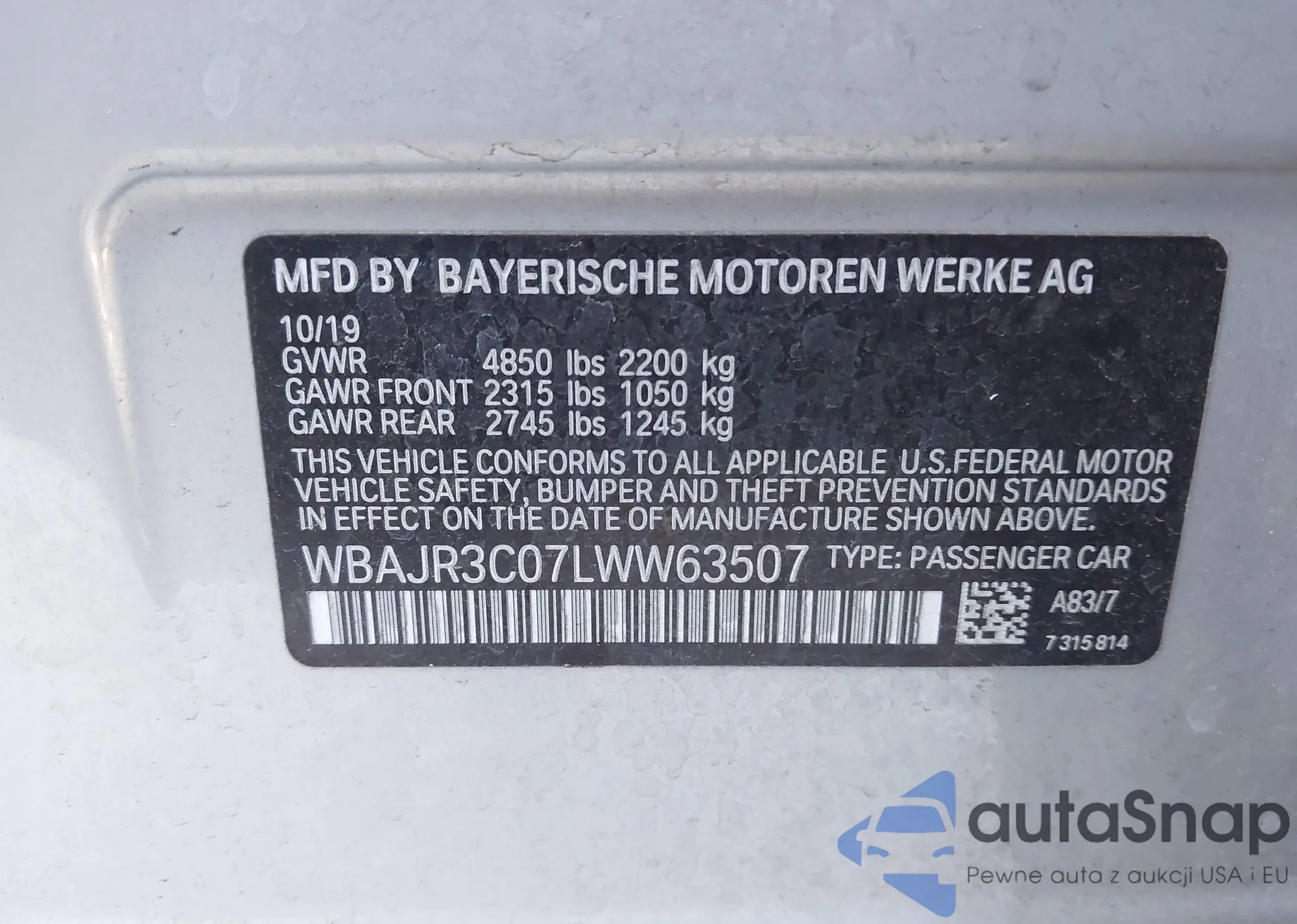 • VIN WBAJR3C07LWW63507